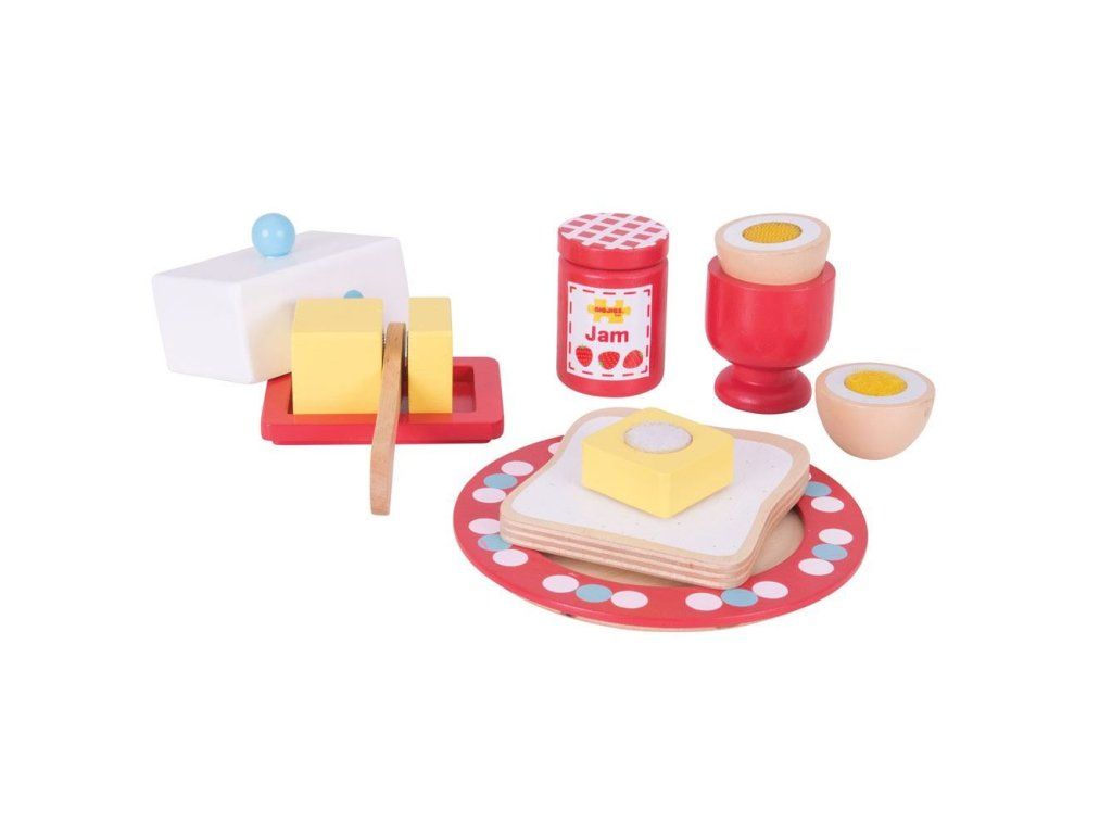 Podávejte vyváženou snídani s touto barevnou dřevěnou snídaňovou sadou, která obsahuje vejce, chléb, máslo a džem. Dodáváno s dřevěným nožem na namazání chleba a potření džemem a dokonce i na rozklepnutí vajíčka. Sada dále obsahuje dřevěný kalíšek na vejce, talíř, nádobu na máslo a víko. BigJigs je velký fanoušek zdravé výživy a jaká by byla lepší cesta učit děti o zdravé výživě, než pomocí hraček z našeho sortimentu? Dřevěné hrací jídlo je ideální k tomu, aby se vaše dítě dozvědělo o důležitosti zdravé a vyvážené stravy. A také o tom, odkud naše jídlo pochází a jak ho připravujeme. Hlavní vlastnosti: podporuje kreativní a nápadité hranívyrobeno z vysoce kvalitních, zodpovědně získaných materiálůsplňuje aktuální evropské bezpečnostní normyDoplňkové parametry