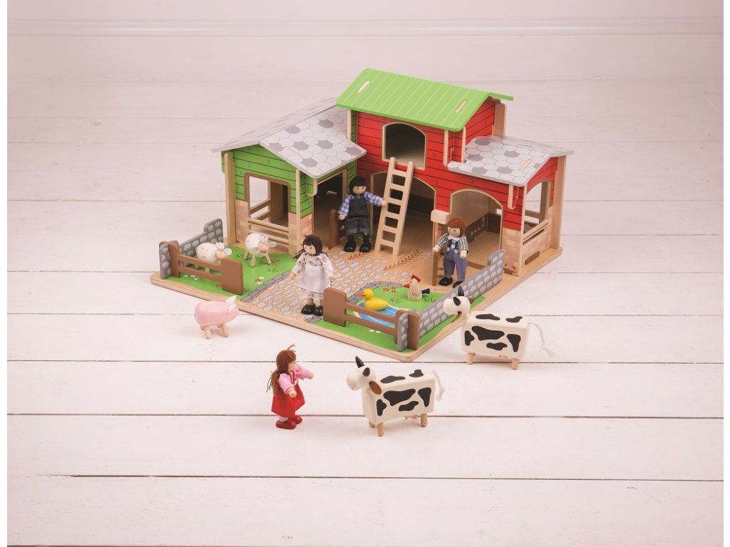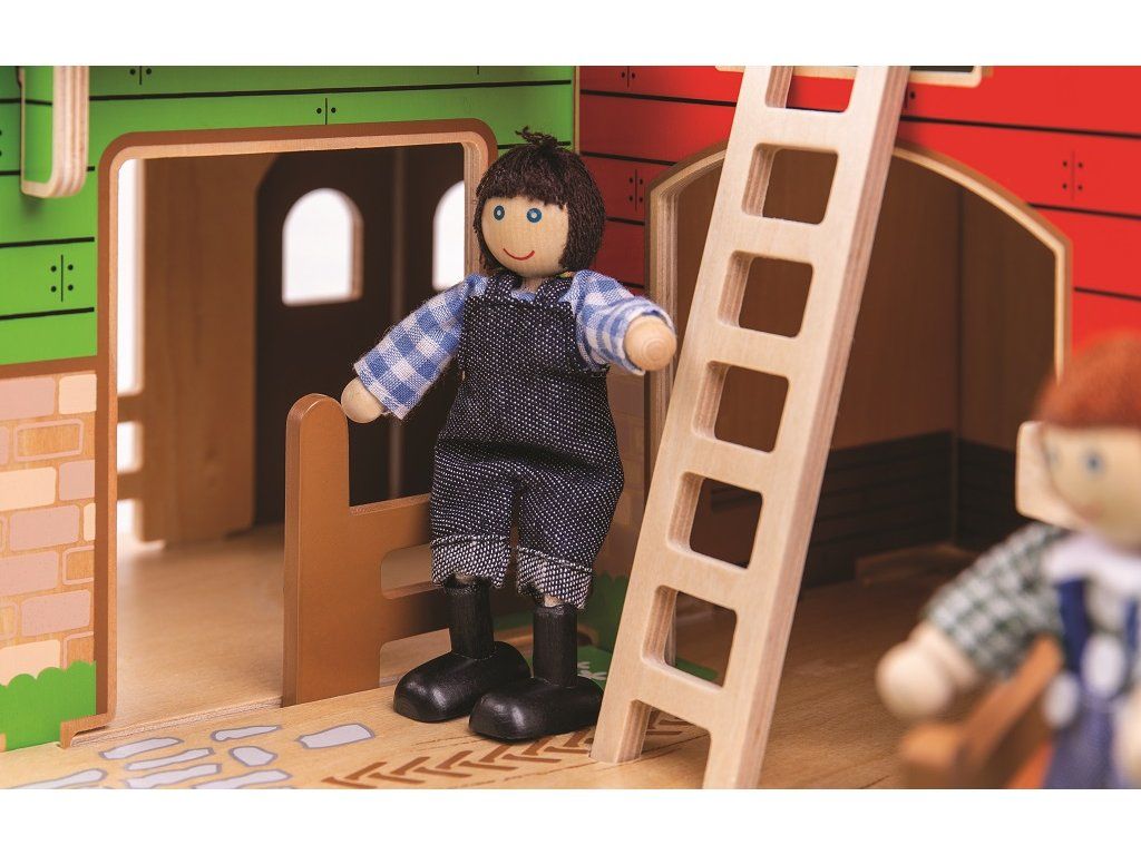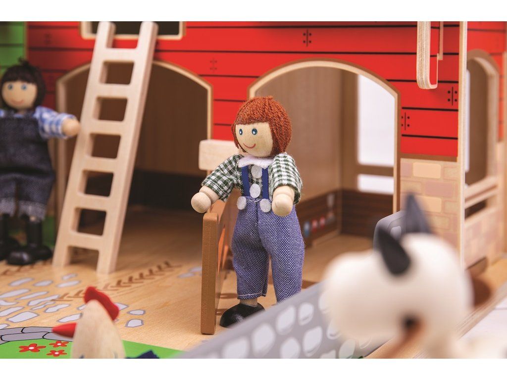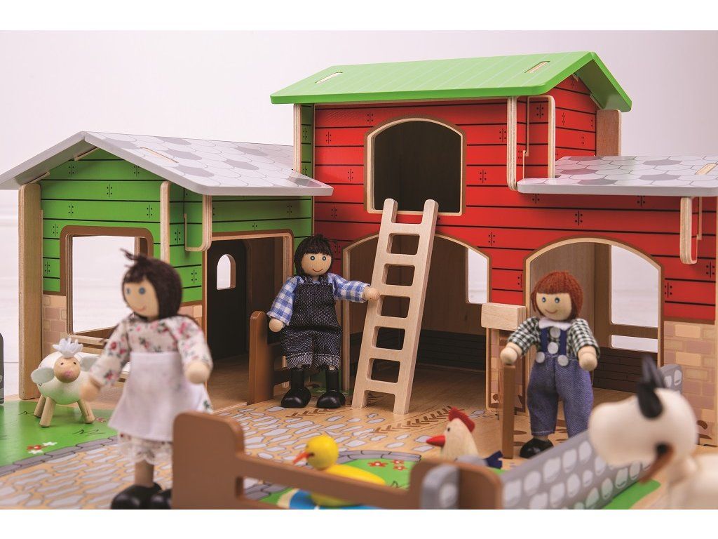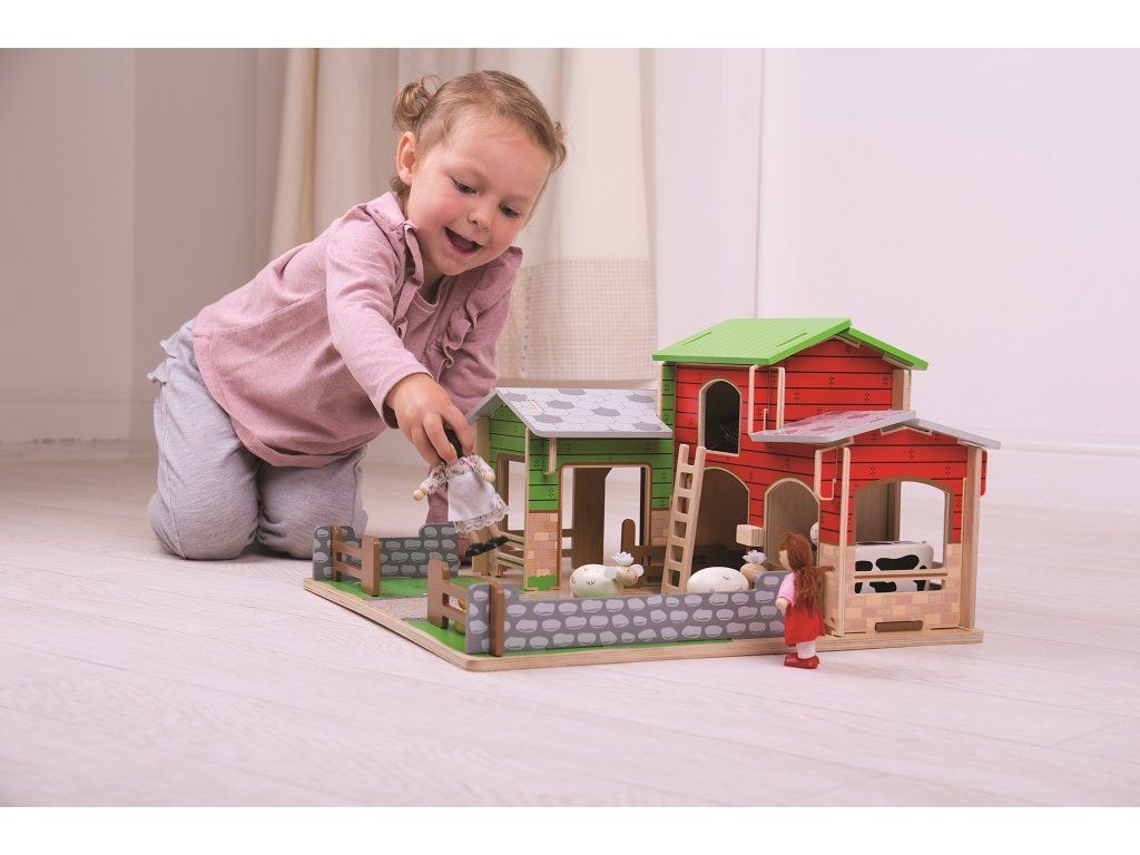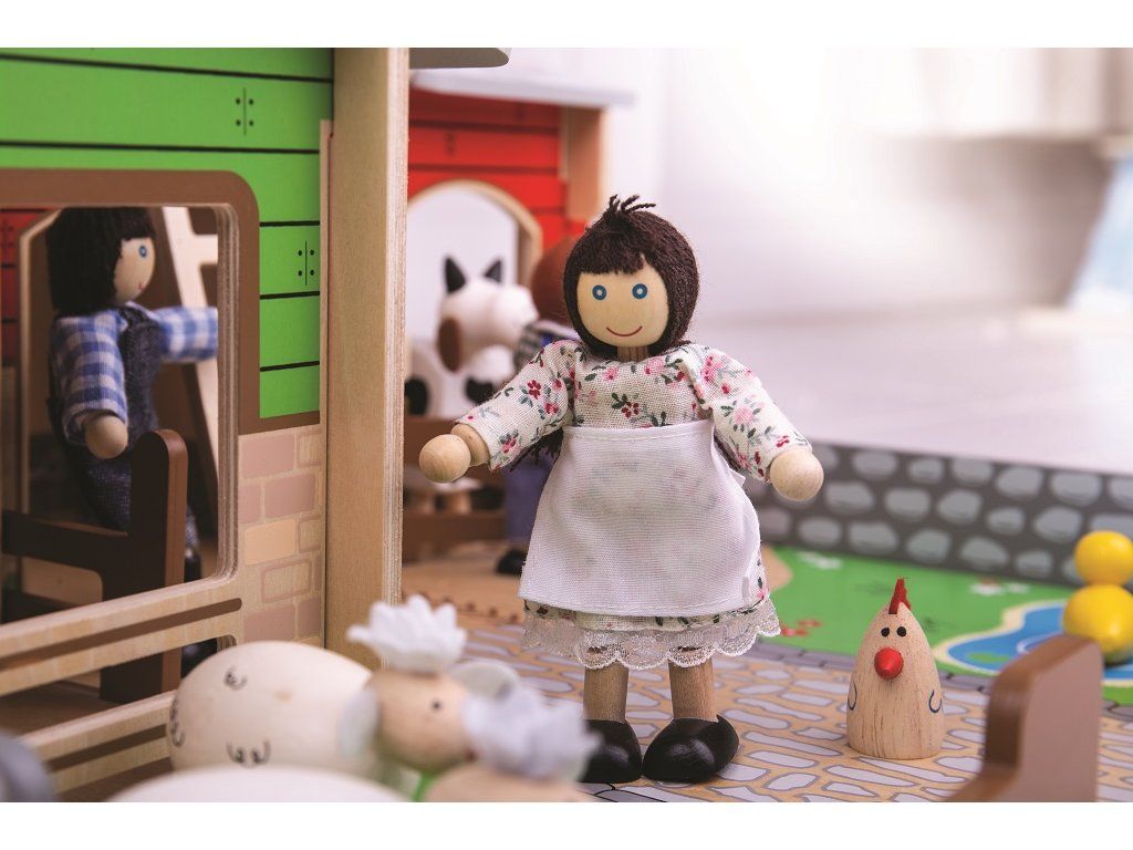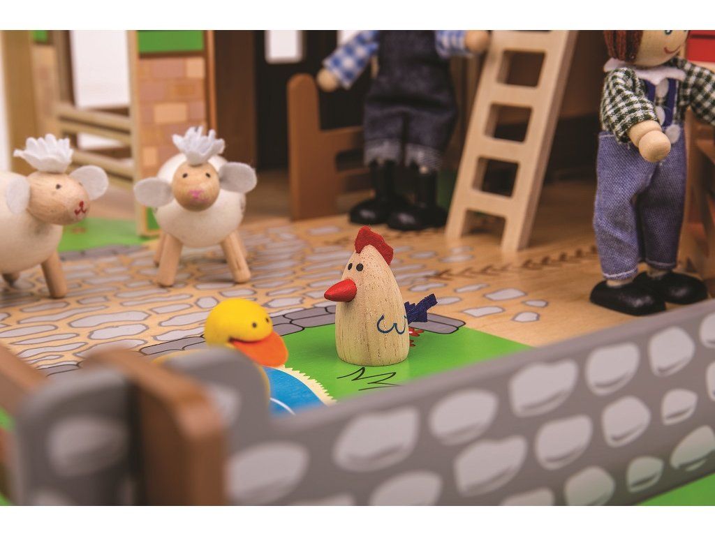 Jste připraveni na rušný den na farmě? Dřevěná farma Cobblestone s otevíracími vraty, stájí, seníkem, kachním rybníkem a také garáži pro traktory. Farmáři se mohou dostat k seníku, když použijí pohyblivý žebřík. Zabezpečí zvířátka v jejich ohradách s pohyblivými vraty. Odnímatelná střecha dětem dovoluje dostat se jednoduše do stodoly a nabízí tak plnohodnotné využití farmy. Idealní velikost farmy pro děti. Jednoduše složte dřevěné dílky do sebe a zábava na farmě může začít! Je to skvělý způsob jak rozvíjet vypravěčské dovednosti, koordinaci, zručnost a jemnou motoriku u dětí. Lze dokoupit další doplňky dle vlastní fantazie. Vyrobeno z kvalitních materiálů z odpovědných zdrojů. Hlavní vlastnosti: pohyblivá vrata, ohrádky farmyodnímatelná střechalze dovybavit dle vlastní fantazierozvíjí komunikační dovednosti, motoriku a koordinaciDoplňkové parametry