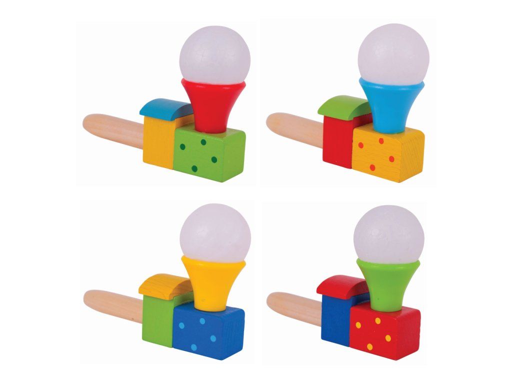 Cena je uvedena za 1 ks. K dispozici jsou 4 barevné varianty, pokud máte zájem o konkrétní barvu, doplňte, prosím, zvolenou variantu do poznámky v objednávce. Pokud bude skladem, rádi Vám vyhovíme. V případě nezadání konkrétního motivu zasíláme náhodně. Připravte se na to, že budete foukat tak silně, jak jen dokážete, abyste zvedli míč a nechali ho se vznášet nad trychtýřem komínu dřevěného vlaku. Hlavní vlastnosti: podporuje kreativní a nápadité hranívyrobeno z vysoce kvalitních, zodpovědně získaných materiálůsplňuje aktuální evropské bezpečnostní normyDoplňkové parametry