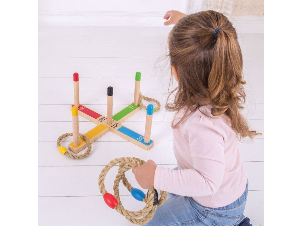 Tato klasická hra dovedností a přesnosti podpoří soutěživost v těch nejmenších, když se pokoušejí přehodit lana přes barevné tyče a dosáhnout tak nejvyššího skóre. Každé lano je barevně sladěné s jednou tyčí. Hrajte jednotlivě nebo s rodinou a přáteli, uvnitř i venku. Hlavní vlastnosti: pomáhá rozvíjet zručnost a koordinaci a zlepšuje matematické dovednostivyrobeno z vysoce kvalitních, zodpovědně dodávaných materiálůodpovídá současným evropským bezpečnostním normámDoplňkové parametry