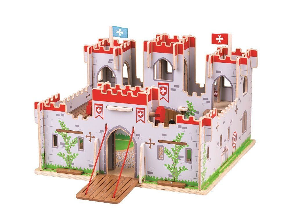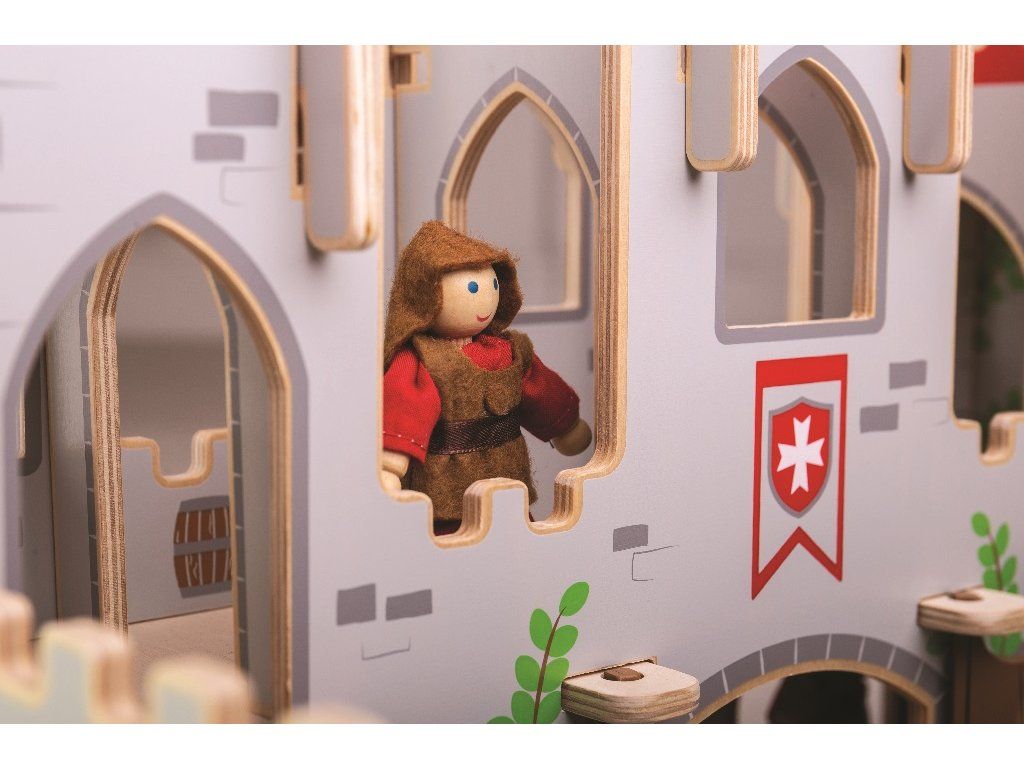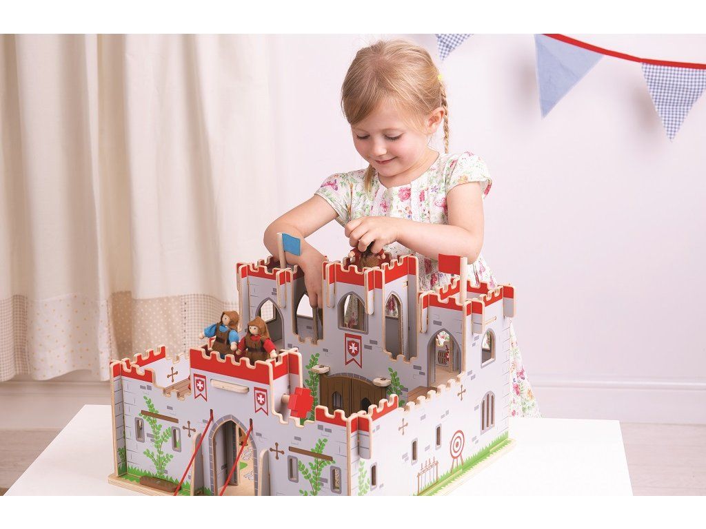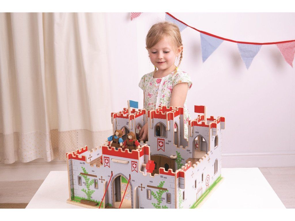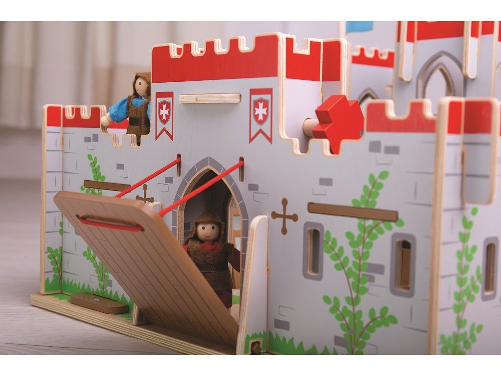 Dřevěný hrad krále George obsahuje plně funkční padací most, balkóny a pohyblivé dveře. Najdete zde i tajné dveře, kterými rytíři vyklouznou ven bez toho, aby je spatřil nepřítel! Mějte hrad pod kontrolou díky padacímu mostu, vyměňujte červené a modré vlajky podle toho, kdo hrad dobyl. Užívejte si magickou hru, nezapomeňte ale být stále ve střehu! Jednoduše složte dřevěné dílky do sebe a dobrodružství může začít. Je to skvělý způsob jak rozvíjet vypravěčské dovednosti, slovní zásobu a zručnost u dětí. Vyrobeno z kvalitních materiálů z odpovědných zdrojů. Postavičky nejsou součástí balení, lze je dokopit. Hlavní vlastnosti: funkční padací most, otevírací dveřevyměnitelné vlajkyrozvíjí komunikační dovednosti, zručnost a představivostjednoduchá montážDoplňkové parametry