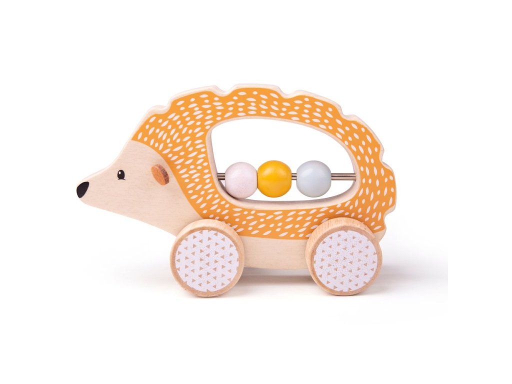 To je ale roztomilý ježek. Tato hračka na kolečkách dětem pomůže s rozvojem jemné motoriky. Ježek je dřevěný, má plstěná ouška a kovovou středovou tyč, na které jsou 3 korálky. Probudí smysly vašich dětí! Hlavní vlastnosti 100% FSC® dřevobarvy bezpečné pro dětijezdí a chrastí Značka a certifikát FSC® (Forest Stewardship Council) zaručuje, že dřevo, ze kterého byl produkt vyroben, nebylo vytěženo nelegálně a pochází z lesů obhospodařovaných šetrným či přírodě blízkým způsobem, ve kterém jsou dodržovány přísné environmentální a sociální požadavky. Značka FSC® na výrobku znamená, že svým nákupem pomáháte chránit lesy a podporujete šetrné, odpovědné či přírodě blízké hospodaření, díky kterému jsou naše lesy stabilnější, zdravější, mají přirozenou druhovou skladbu a lépe odolávají negativním následkům klimatických změn.Doplňkové parametry