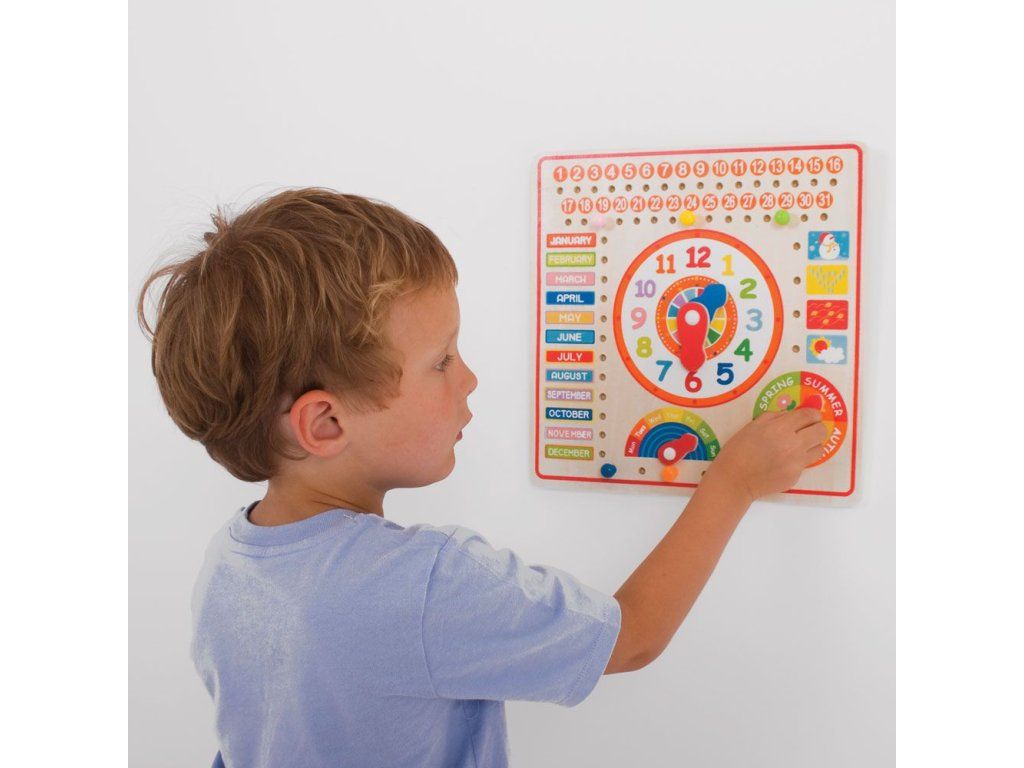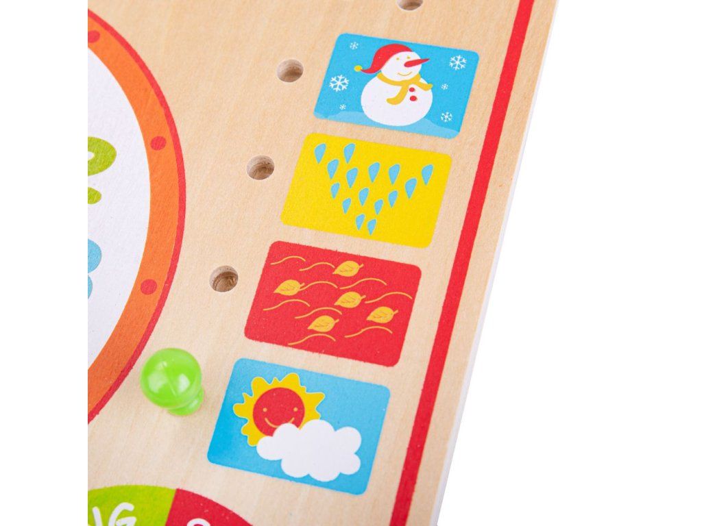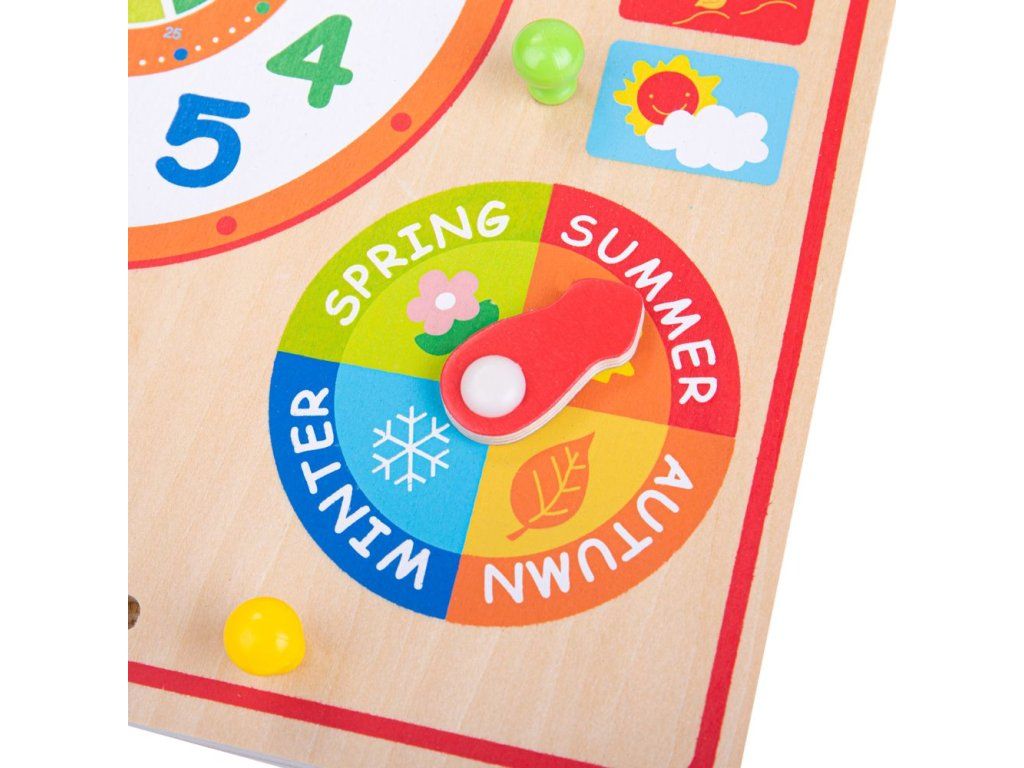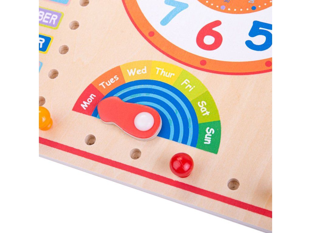 Naše dřevěné hodiny a kalendář jsou plné zábavných funkcí a příležitostí k učení. Naučte se rozlišovat čas pomocí velkých hodin a různé měsíce a dny v týdnu. Tato vzdělávací hračka obsahuje velké hodiny, dny, měsíce a roční období s ciferníky a bodovými ukazateli. Fantastický doplněk do každého dětského pokoje či herny, protože je to skvělá naučná zábava. Naše dřevěné hodiny pomáhají rozvíjet dětskou zručnost , koncentraci a všeobecné znalosti . Vyrobeno z vysoce kvalitních, zodpovědně získaných materiálů. Splňuje aktuální evropské bezpečnostní normy. Hlavní vlastnosti: obsahuje posuvné ciferníky a bodové ukazatelezákladní deska s popisy v angličtinězábavné učení se o počasí, ročních obdobích, datech, kalendáři a poznávání časuDoplňkové parametry