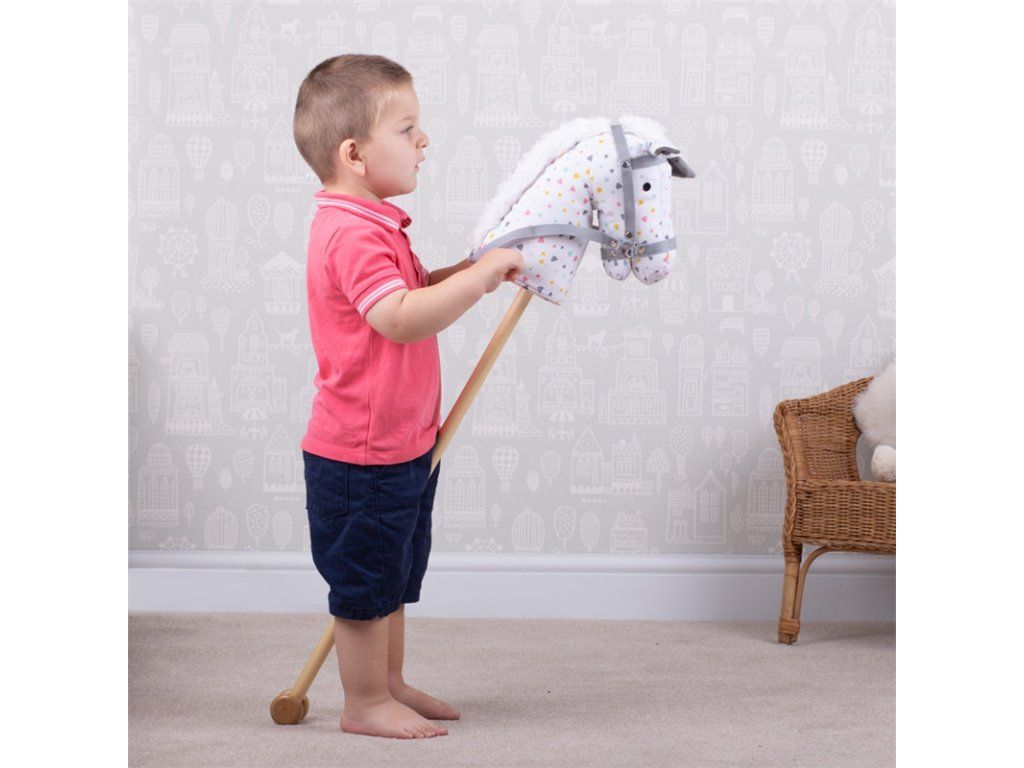 Cváláme, koníčku! Osedlejte si rozkošného koníčka s květinovým vzorem na hodiny aktivní zábavy. Koníci na tyči jsou skvělým způsobem, jak podpořit pohybovou aktivitu a cvičení, když malé nožičky cválají po herně nebo na zahradě. Tento rozkošný dřevěný koníček se vyznačuje měkkou plyšovou hlavou, nadýchanou hřívou, praktickými otěžemi, snadno uchopitelnými rukojeťmi, kolečky na konci tyče a pevnou konstrukcí. Lesklá dřevěná kolečka nezanechávají stopy na podlaze a kloužou po hladkém rovném povrchu.Vyrobeno z vysoce kvalitních materiálů z odpovědných zdrojů . Splňuje aktuální evropské bezpečnostní normy. Hlavní vlastnosti: snadno uchopitelné rukojetidvě dřevěná kola na konci tyče, které kloužou po pevných podlaháchměkká plyšová hlavapodporuje pohybovou aktivituvyrobeno z vysoce kvalitních, zodpovědně získaných materiálůDoplňkové parametry