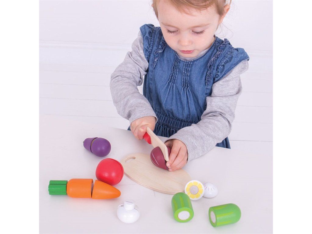 Tato pestrobarevná přehlídka dřevěných hraček obsahuje výběr různých druhů zeleniny, které lze opatrně a přesně krájet pomocí dřevěného nože. Zajistíte úplnou bezpečnost Vašeho dítěte, které může krájet zeleninu na dodávané dřevěné desce. Skvělý způsob, jak se dozvědět o bezpečnosti kuchyně. Sada obsahuje mrkev, rajčata, okurku, cibuli, houbu a další! Bigjigs Toys dřevěné hračkové jídlo je ideální, aby pomohlo vašemu dítěti dozvědět se o významu zdravé a vyvážené stravy, odkud pochází naše jídlo a jak jej připravujeme. Po skončení hraní může být dřevěná strava uložena zpět do praktického boxu a zajištěna čistým posuvným víkem. Vyrobeno z vysoce kvalitních, zodpovědně dodávaných materiálů. Odpovídá současným evropským bezpečnostním normám. Hlavní vlastnosti: dřevěné potraviny spojené suchým zipemrozvíjí motoriku dětíučí správnému stravováníDoplňkové parametry