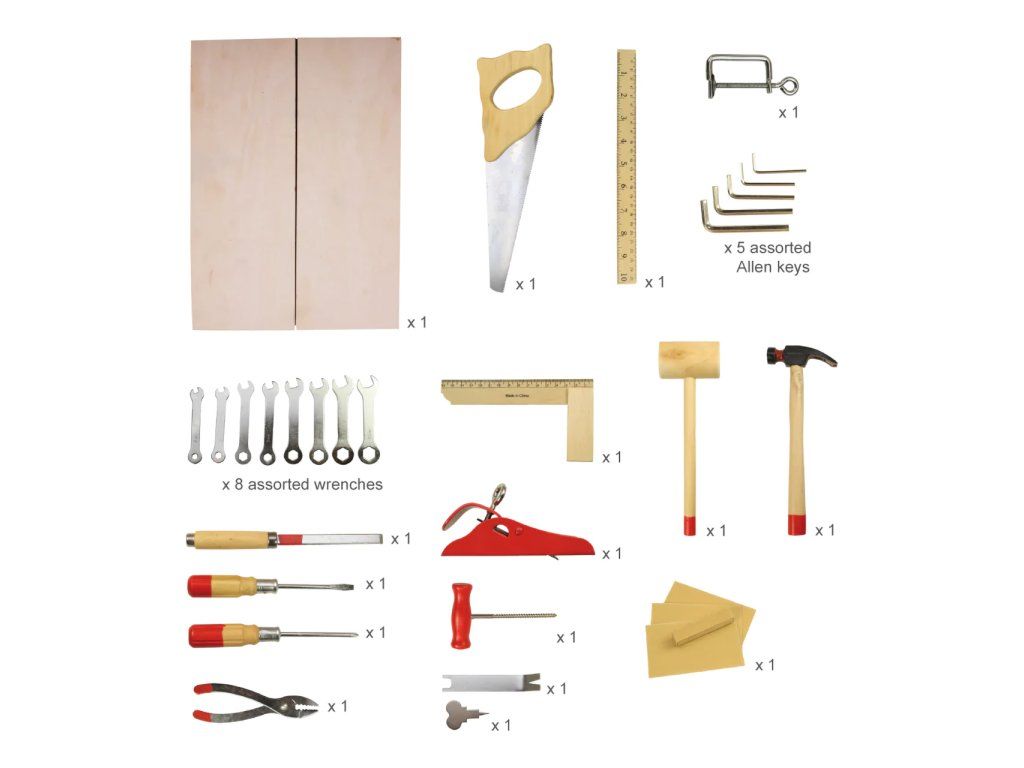 Je tu všechno, co mladý zpracovatel dřeva potřebuje k tomu, aby využil své zručnosti s tímto dřevěným nářadím. Kufřík obsahuje šroubováky, pily, klíče, kladiva, plus mnoho dalších nástrojů! Vyrobeno z vysoce kvalitních materiálů. Vyhovuje současným evropským bezpečnostním normám. Skládá se z 28 součástí. Hlavní vlastnosti: dřevěné nářadí pro malé kutilyobsahuje 28 součástíDoplňkové parametry