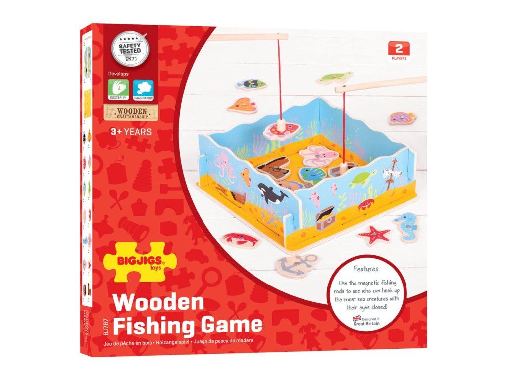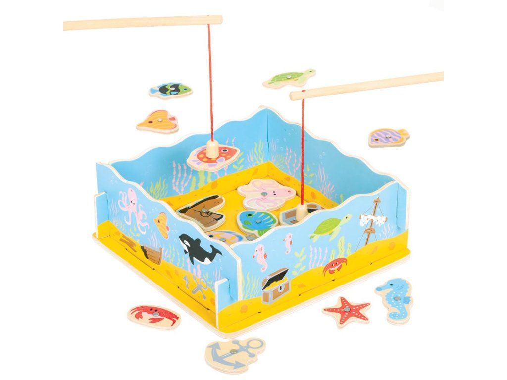 Popadněte svůj rybářský prut a užijte si tuto hru! Hra vyžaduje dovednost a koncentraci, protože každou rybu je třeba umístit zpět do správného otvoru. Pomáhá rozvíjet obratnost a koordinaci. Vyrobeno z vysoce kvalitních materiálů z odpovědných zdrojů. Vyhovuje současným evropským bezpečnostním normám. Součástí balení je 11 rybek, jedna truhla s pokladem, jedna bota a jedna kotva + konstrukce moře s dvěma pruty. Hlavní vlastnosti: rozvíjí zručnost a koordinaciobsahuje 11 rybiček, 1 truhlu s pokladem, 1 botu, 1 kotvu, 2 pruty a konstrukci mořeDoplňkové parametry