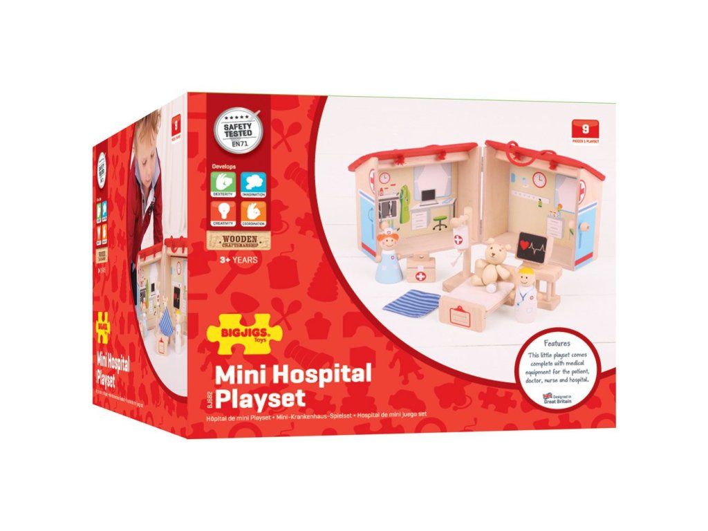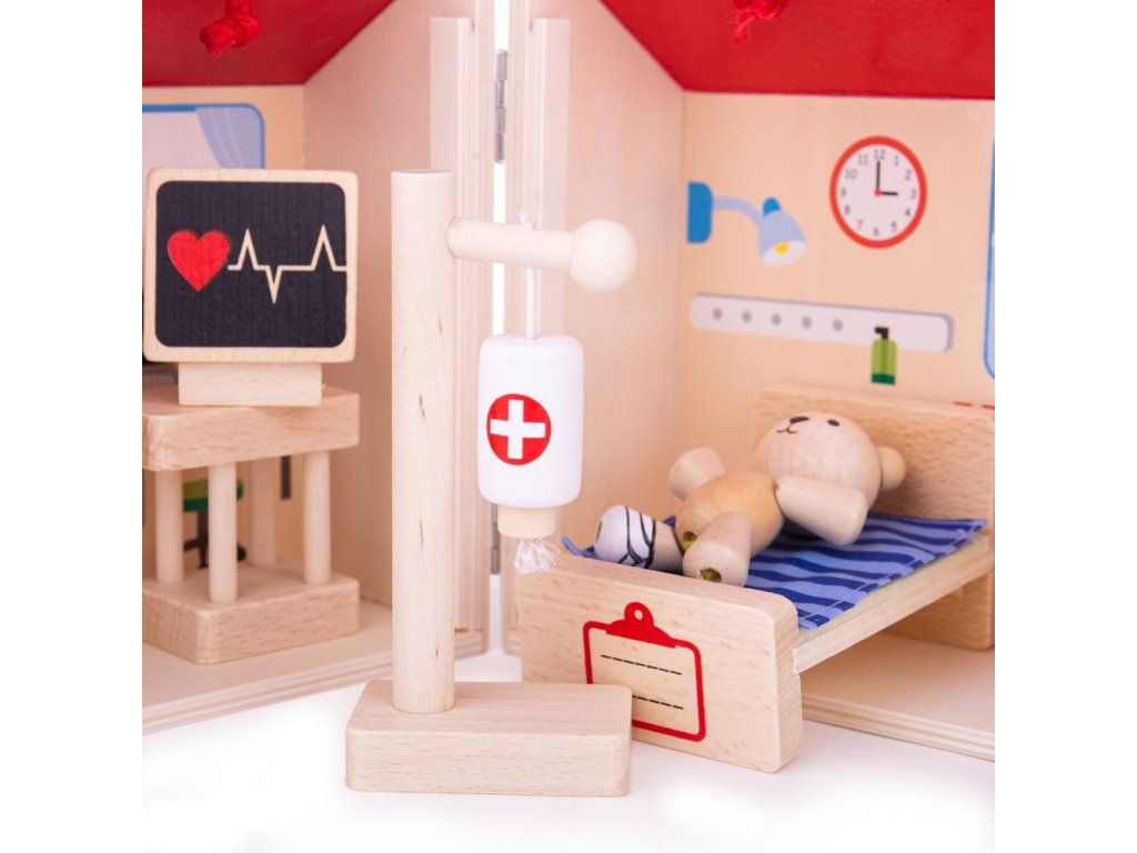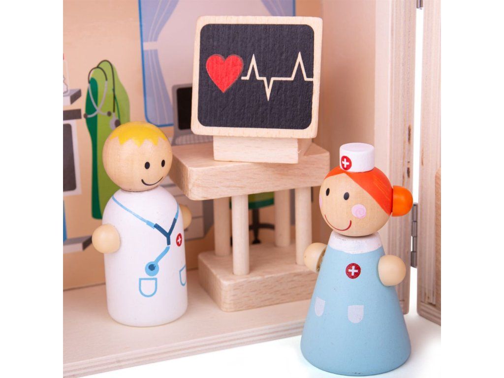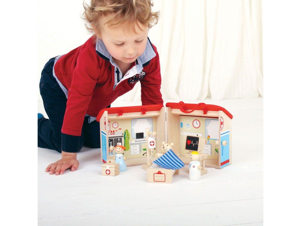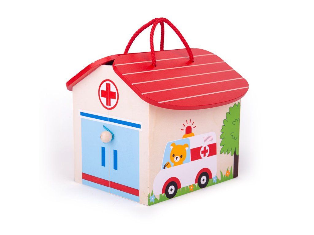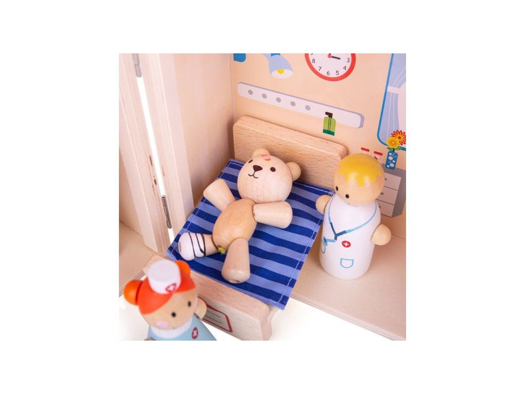 Pan Medvěd se praštil do hlavy! Tato pestrobarevná dřevěná mini nemocniční herní sada má uvnitř i zvenčí funkcemi prvky a je dodávána s nemocničním lůžkem, lékařskou kapačkou, srdečním monitorem, medvědem, sestřičkou a lékařem. Rukojeť a bezpečná spona zajišťují, že tato sada je vždy připravena cestovat s vaším malým dítětem a zároveň jsou všechny herní prvky bezpečně uloženy uvnitř. Vyrobeno z vysoce kvalitních, zodpovědně získaných materiálů. Splňuje aktuální evropské bezpečnostní normy. Obsahuje 9 hracích prvků. Hlavní vlastnosti: kompaktní uzaviratelná mini nemocniceobsahuje 9 hracích prvkůvyrobeno z vysoce kvalitních, zodpovědně získaných materiálůsplňuje aktuální evropské bezpečnostní normyDoplňkové parametry