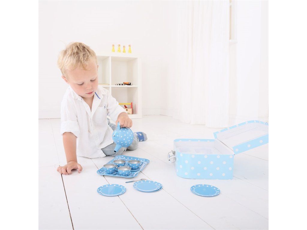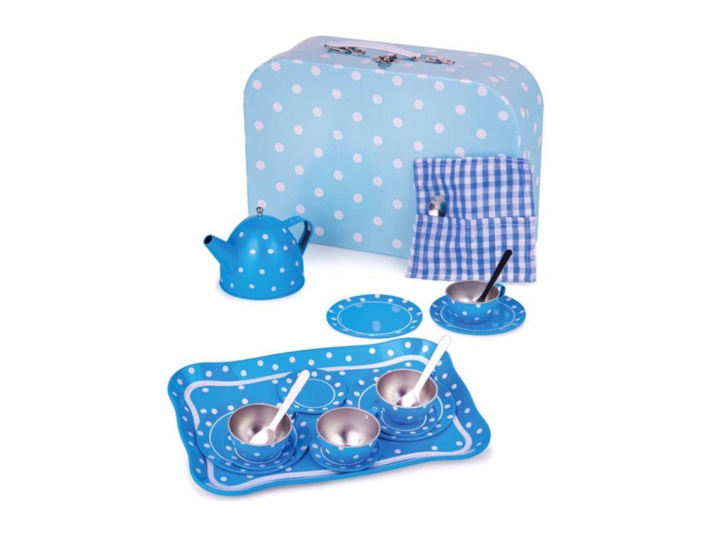 Bigjigs Toys Modrý puntíkovaný čajový set