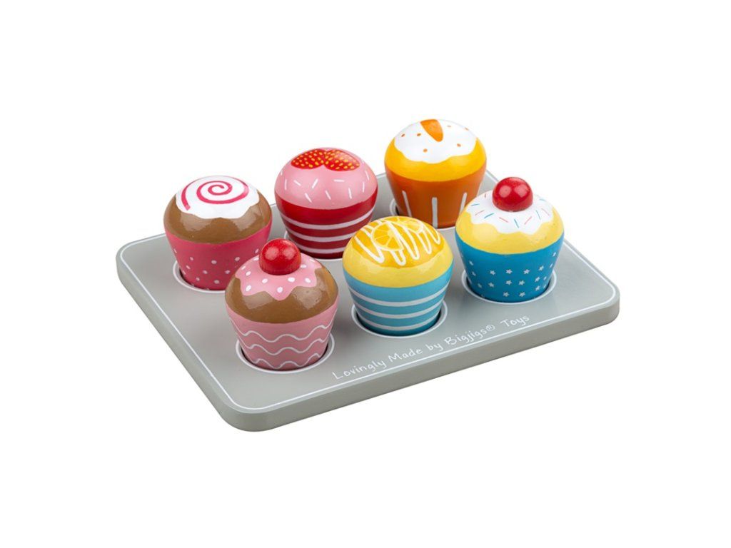 Šest lahodných dřevěných muffinů s podnosem připravených k ozdobení jakékoliv dřevěné kuchyně, hraní si na obchod nebo pro čajovou párty. Každý je pestře zbarvený a individuálně ozdobený. Muffiny jsou připraveny k servírování, jakmile jsou v dřevěném podstavci úhledně zasunuty! BigJigs je velký fanoušek zdravé výživy a jaká by byla lepší cesta učit děti o zdravé výživě, než pomocí hraček z našeho sortimentu? Dřevěné hrací jídlo je ideální k tomu, aby se vaše dítě dozvědělo o důležitosti zdravé a vyvážené stravy. A také o tom, odkud naše jídlo pochází a jak ho připravujeme. Hlavní vlastnosti: dodáván s podnosem na muffinyskvělé pro každého mladého šéfkuchařerozvíjí sociální dovednosti, obratnost, představivost a kreativituvyrobeno z vysoce kvalitních, zodpovědně získaných materiálůsplňuje aktuální evropské bezpečnostní normyDoplňkové parametry