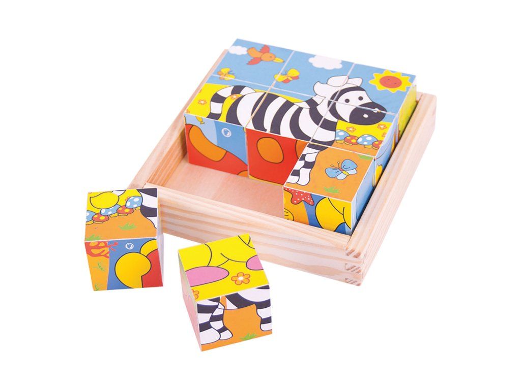 Bigjigs Toys Obrázkové kostky kubusy Safari 9 kostek