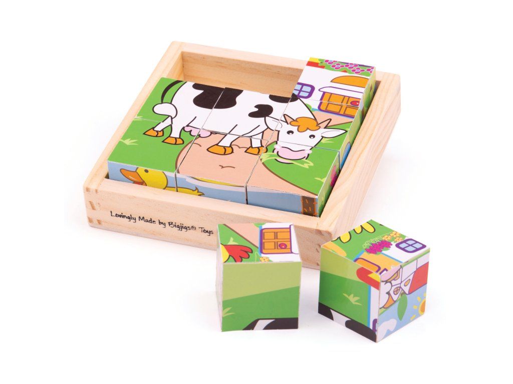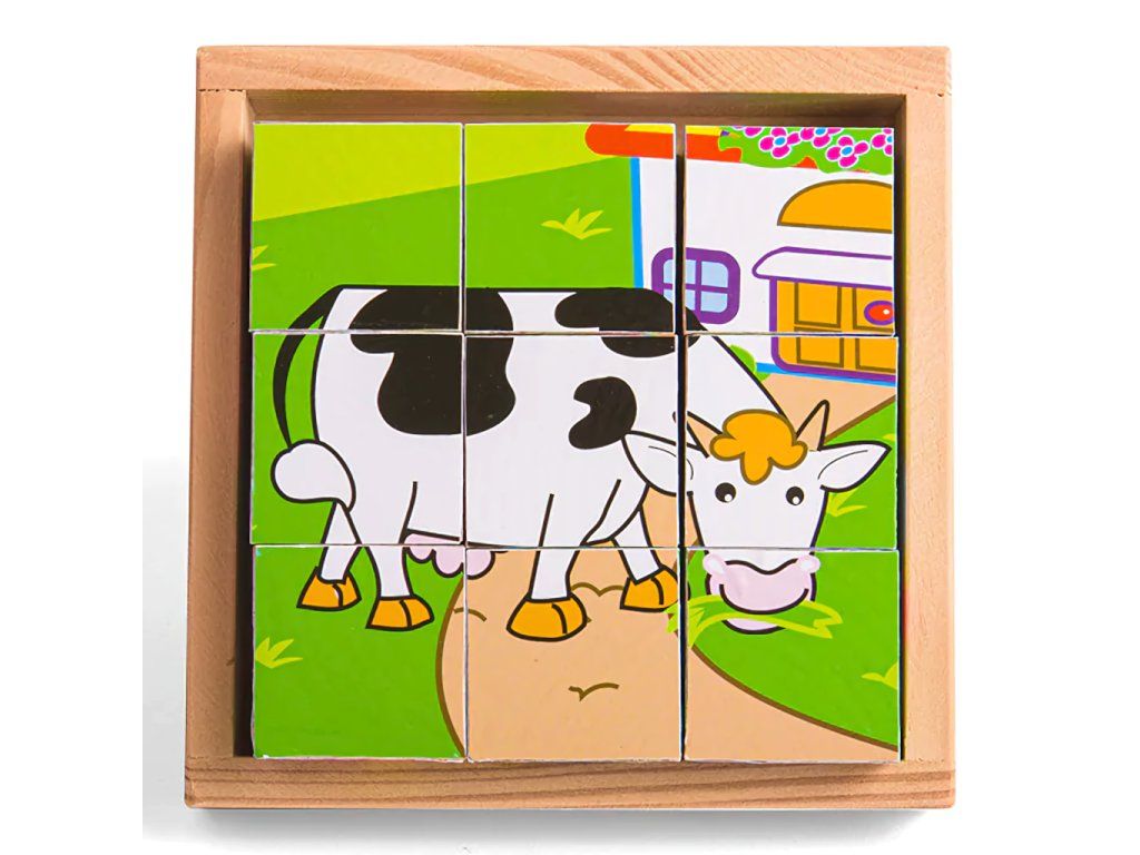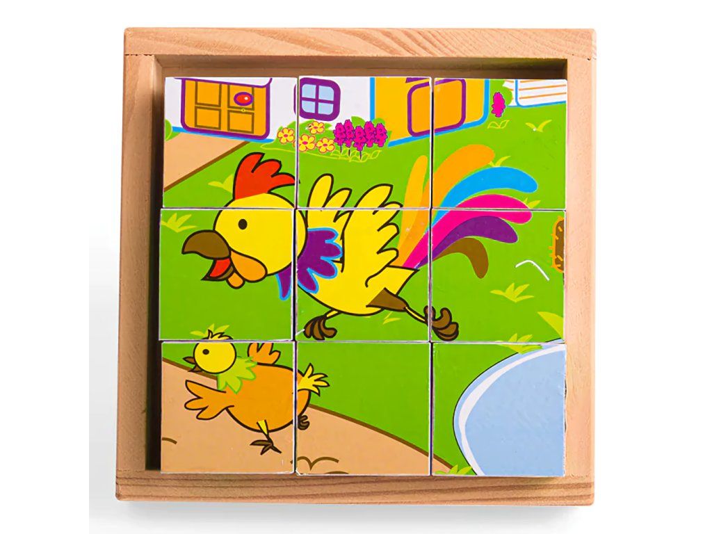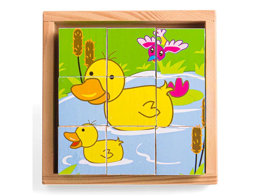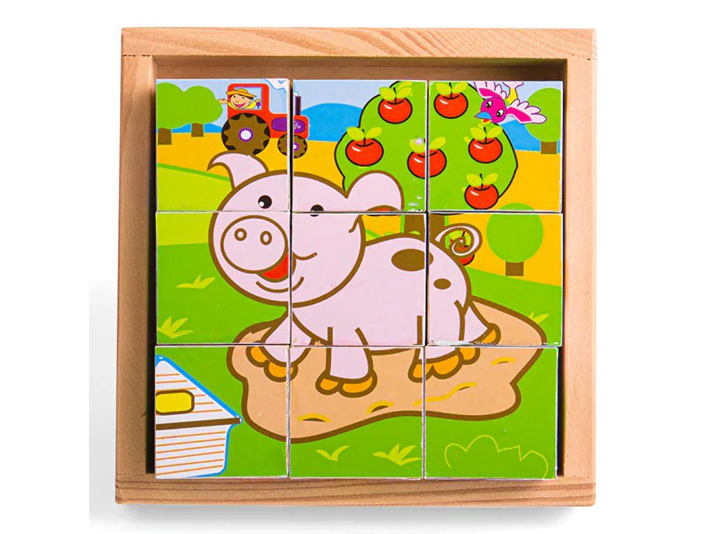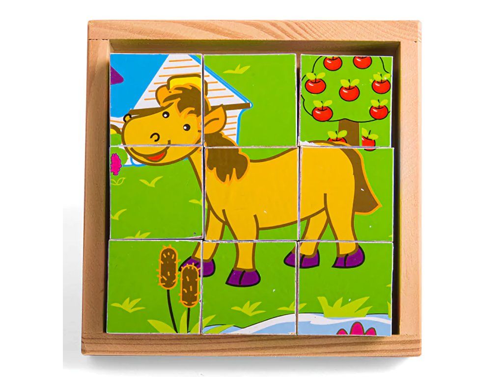 Devět dřevěných kostek vytváří šest různých obrázků. Otočte každou kostkou a vytvořte obrázek, nebo je smíchejte pro zábavu! Každý kus robustní dřevěné skládačky je vyroben tak, aby usnadnil zvedání, uchopení, zkoumání a přeměnu v malých rukou. Pomáhá rozvíjet obratnost, dovednost a soustředění. Vhodné na doma i na cesty. Šikovnou dřevěnou podložku lze použít jako základnu skládačky (zvláště užitečné při cestování) a umožňuje bezpečné uložení všech dílků. Hlavní vlastnosti: vyrobeno z vysoce kvalitních, odpovědně získaných materiálůodpovídá současným evropským bezpečnostním normámobsahuje 9 kostekDoplňkové parametry