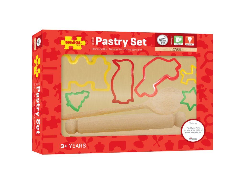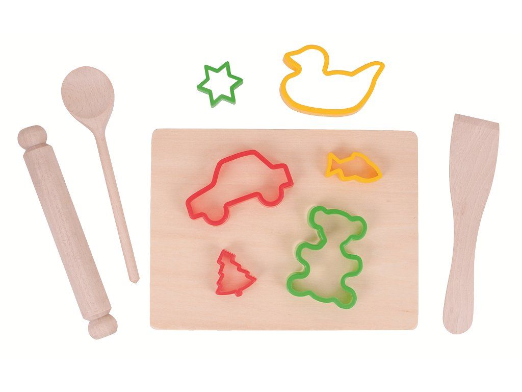 Ideální sada pro zábavu při pečení! Obsahuje vařečku, stěrku, prkénko a váleček. Dodáváno se šesti pestrobarevnými vykrajovátky na pečivo, včetně hvězdy, auta, psa, vánočního stromku, vláčku a tučňáka. Splňuje aktuální evropské bezpečnostní normy. Skládá se z 10 dílů. Hlavní vlastnosti: obsahuje 10 dílůpodporuje kreativitu a tvůrčí činnostDoplňkové parametry