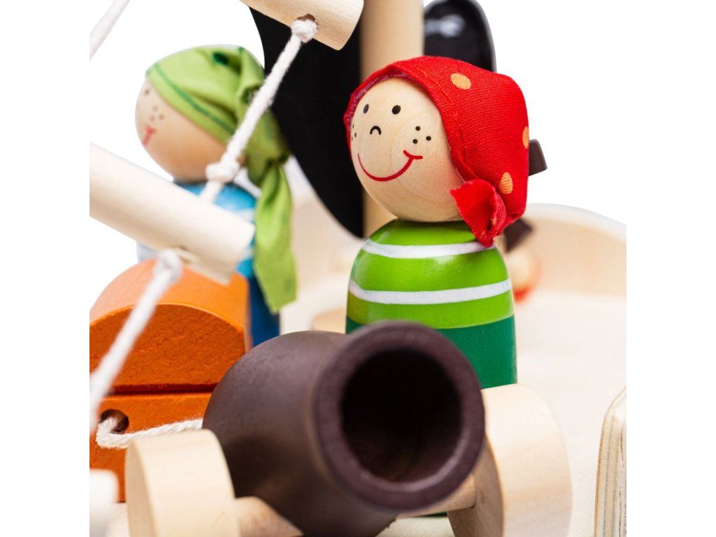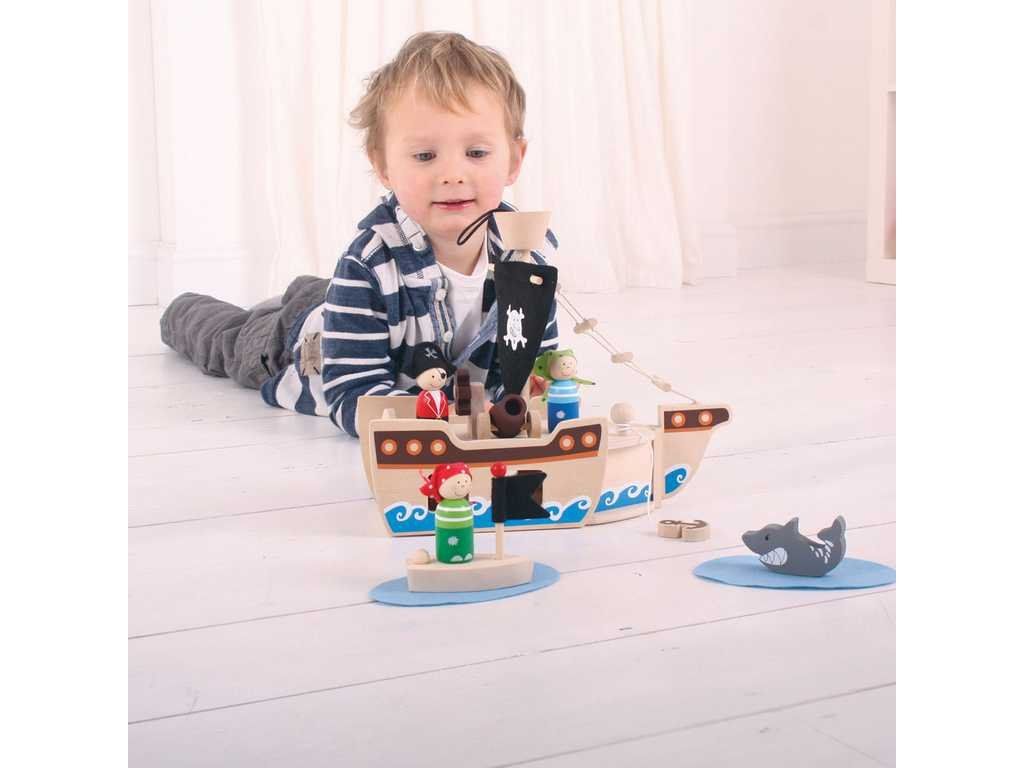 Ahoj kapitáne! Veselí námořníci budou zbožňovat tuto dřevěnou mini pirátskou loď, dodávanou s kapitánem, dvěma piráty, lodí, kotvou, truhlou s pokladem a dokonce i žralokem! Všechny hrací prvky lze jednoduše schovat do lodi a vzít sebou kamkoliv na cesty. Součásti balení je vše dle obrázku. Hlavní vlastnosti: vyrobeno z vysoce kvalitních materiálů, které pocházejí ze zodpovědných zdrojůvyhovuje současným evropským bezpečnostním normámDoplňkové parametry