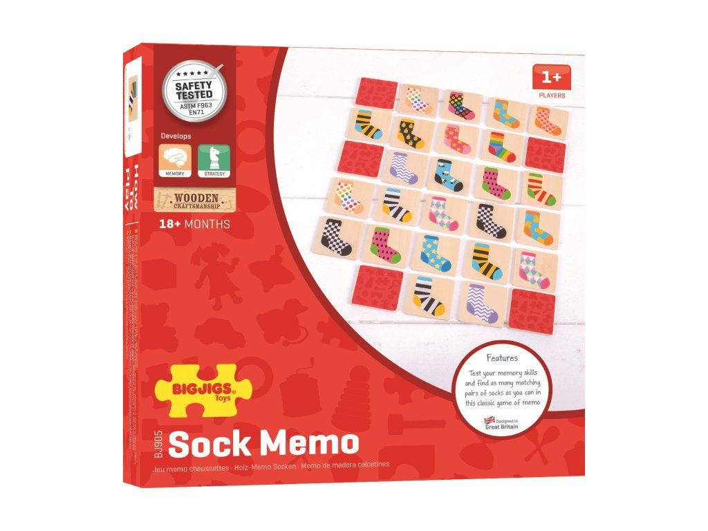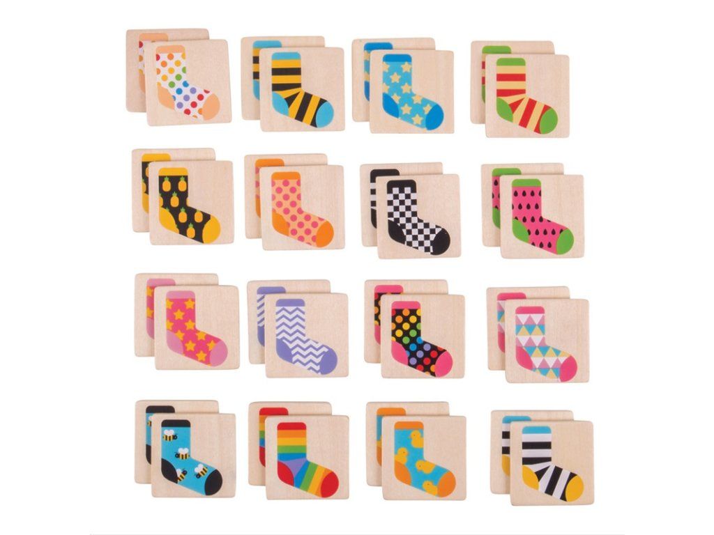 Tato hra s ponožkami určitě otestuje paměť a pozorovací schopnosti dětí! 32 dřevěných dílků je umístěno lícem dolů na stůl nebo podlahu. Hráči se musí střídat a otáčí vždy dva dílky. Pokud se shodují, hráč si ponechá tento pár ponožek a otočí další dvě, přičemž pokračuje, dokud se obě otočené destičky neshodují – pak je na řadě další hráč. Hráč s největším počtem párů na konci hry je vítěz! Tím zábava nekončí... Skvělý způsob, jak rozvíjet koncentraci, paměť a pozorovací schopnosti. Podporuje interaktivní hry a rozvíjí slovní zásobu. Učí děti obratu a strategii. Vyrobeno z vysoce kvalitních, zodpovědně získaných materiálů. Splňuje aktuální evropské bezpečnostní normy. Skládá se z 32 hracích dílků. Hlavní vlastnosti: obsahuje 32 dílkůzlepšuje paměť a pozorovací schopnostivyrobeno ze dřevaDoplňkové parametry