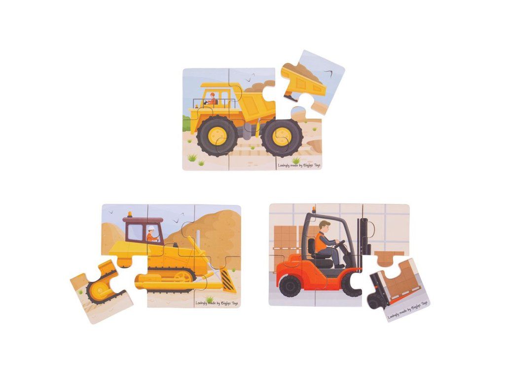 Bigjigs Toys Puzzle 3v1 Stavební stroje