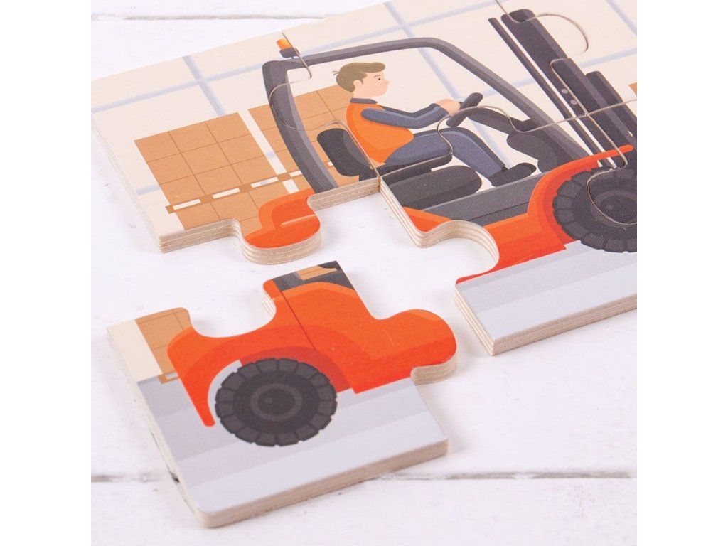 Spojte dřevěné dílky dohromady a odhalte tři velká stavební vozidla. Toto krásně navržené puzzle je skvělý způsob, jak rozvíjet představivost a zdokonalovat myšlení, když se váš drobeček rozhoduje, kam se každý díl vejde. Jakmile bude finální díl umístěn, děti budou cítit pocit úspěchu. Pomáhá také rozvíjet obratnost, dovednosti a koncentraci. Hlavní vlastnosti: dřevěná skládačka pomáhá rozvíjet slovní zásobu pomáhá při rozpoznávání tvarů, barev a obrázků rozvíjí motorikuDoplňkové parametry