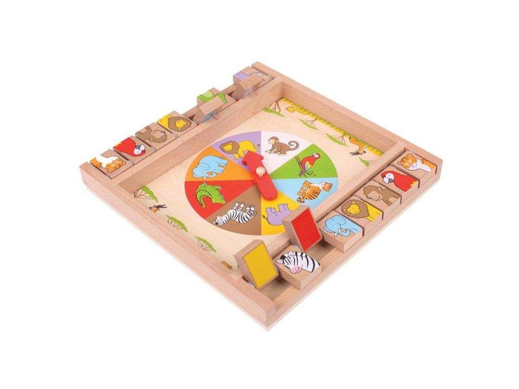 Tradiční hra v moderním Bigjigs Toys designu! Závody se soupeři. Který z vás dříve postupně zastaví ruletu na všech zvířátkách? První, komu se to podaří, je korunován vítězem! Zvířátka, na která vám ruleta již ukázala, si můžete označit překlopením jeho obrázku umístěném na okraji hry. Vyrobeno z kvalitních a zodpovědně získaných materiálů. Odpovídá současným evropským bezpečnostním normám. Hlavní vlastnosti: rozvíjí komunikační schopnostipomáhá při rozpoznávání barev a tvarůvyrobeno z udržitelného dřevaDoplňkové parametry