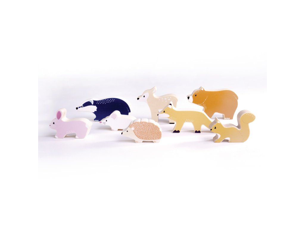 Postavičky lesních zvířátek ze 100% FSC certifikovaného dřeva. Nejsou ale obyčejné! Děti si s nimi mohou kromě klasické hry trénovat svou zručnost a koordinaci ruka-oko a to tak, že je budou skládat na sebe! Skládejte opatrně a s rozvahou, ať vám zvířátka nespadnou. Hlavní vlastnosti: 8 figurekvyrobeno z 100% FSC® dřeva Značka a certifikát FSC® (Forest Stewardship Council) zaručuje, že dřevo, ze kterého byl produkt vyroben, nebylo vytěženo nelegálně a pochází z lesů obhospodařovaných šetrným či přírodě blízkým způsobem, ve kterém jsou dodržovány přísné environmentální a sociální požadavky. Značka FSC® na výrobku znamená, že svým nákupem pomáháte chránit lesy a podporujete šetrné, odpovědné či přírodě blízké hospodaření, díky kterému jsou naše lesy stabilnější, zdravější, mají přirozenou druhovou skladbu a lépe odolávají negativním následkům klimatických změn.Doplňkové parametry