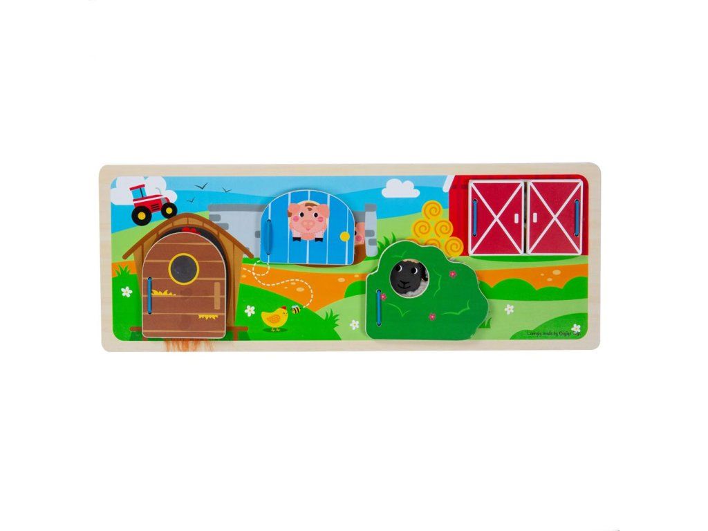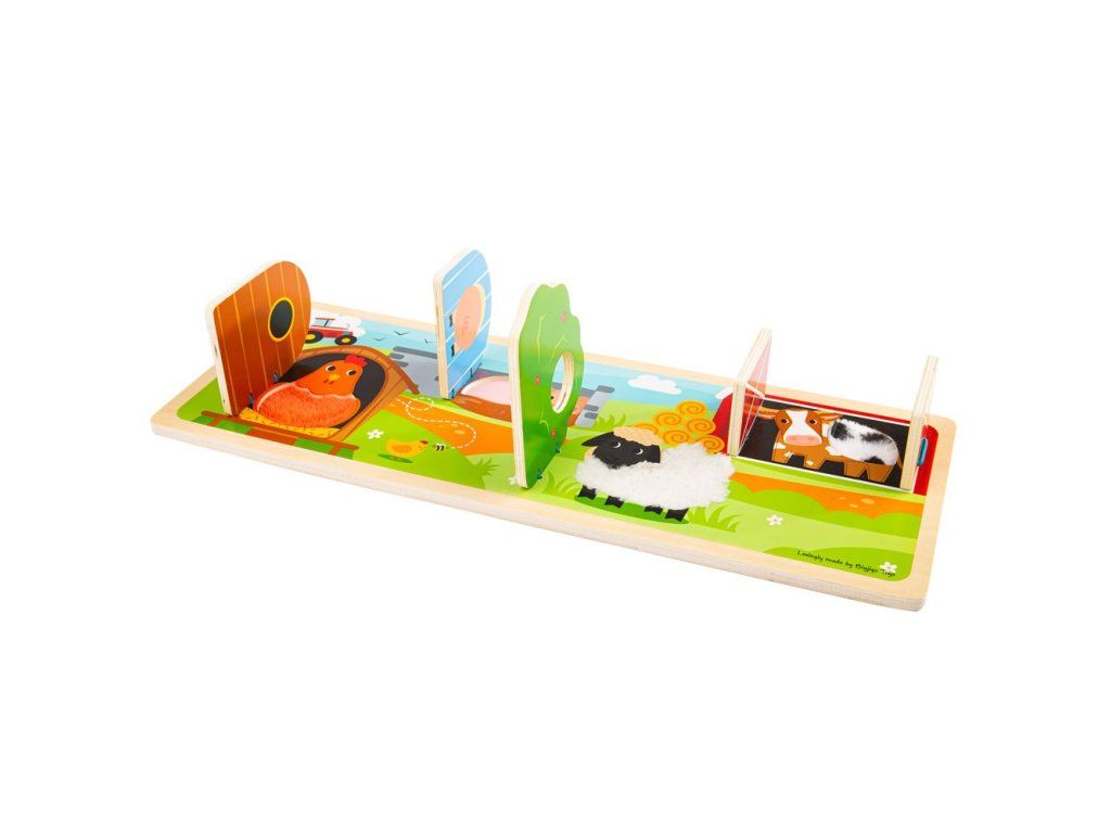 Povzbuďte ty nejmenší, aby prozkoumávali zrakem a dotekem dřevěné senzorické schéma. Co se děje na scéně? Jaké drzé zvířátko se skrývá za vraty? Co můžete vidět a čeho se dotknout na obloze? Povzbuďte děti, aby diskutovaly o scéně a o tom, co vidí. Rozvíjí slovní zásobu a podporuje vyprávění. Skvělé pro smyslový rozvoj a rozvoj koordinace ruka/oko, jemné motoriky a obratnosti. Vyrobeno z vysoce kvalitních, zodpovědně získaných materiálů. Splňuje aktuální evropské bezpečnostní normy. Hlavní vlastnosti: rozvíjí slovní zásobupodporuje smyslový rozvoj a koordinační dovednostioriginální didaktická pomůckaDoplňkové parametry