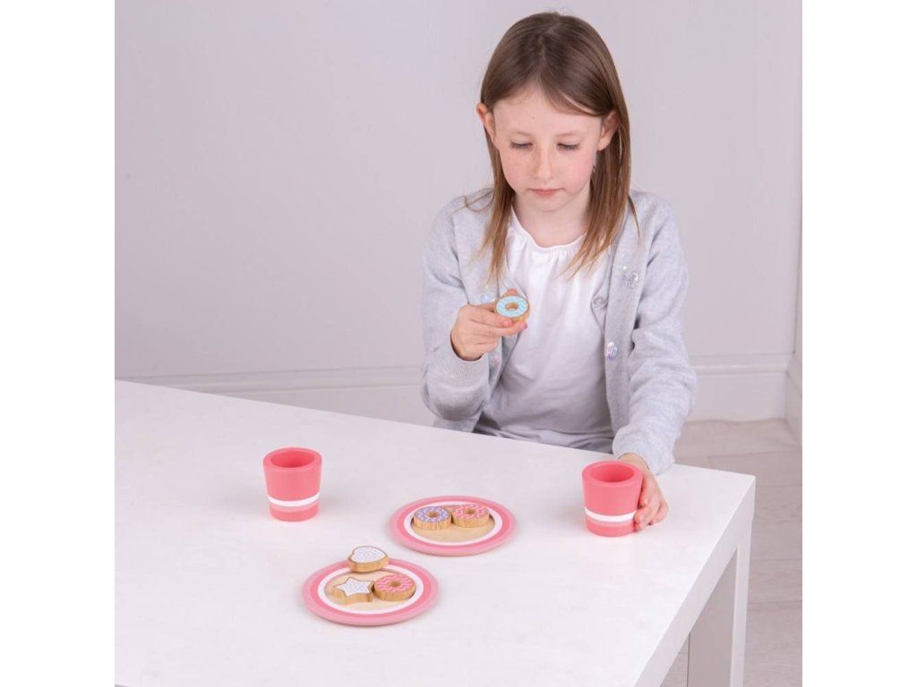 Dejte si lahodné mléko a sušenky nebo se podělte o sladkou pochoutku s kamarádem nebo rodinou. Tato nádherná dřevěná sada obsahuje 6 dřevěných sušenek, 2 talíře a 2 hrníčky. Skvělý způsob, jak inspirovat kreativní a nápadité hraní a skvělý doplněk do každé dřevěné kuchyňky. Rozvíjí obratnost a zlepšuje sociální dovednosti již od raného věku. Vyrobeno z vysoce kvalitních, zodpovědně získaných materiálů. Splňuje aktuální evropské bezpečnostní normy. Hlavní vlastnosti: obsahuje 6 dřevěných sušenek, 2 talíře a 2 hrníčkypodporuje kreativní a nápadité hranívyrobeno z vysoce kvalitních, zodpovědně získaných materiálůDoplňkové parametry