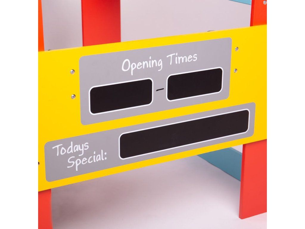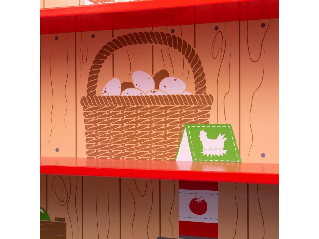 Vesnický obchod v pestrých barvách a životní velikosti je připraven k naplnění čerstvými produkty pro všechny zákazníky. Obsahuje tabuli na křídy, kde děti mohou napsat otevírací dobu a speciální nabídku, také hodiny s otočnými ručičkami. Pomozte dětem utvořit jejich sebevědomí při hře na prodavače či manažery obchodu. Potraviny, pokladna (BJ468) a váhy (BJ467) nejsou součástí balení. Obchod musí být po vybalení složen. Odpovídá současným evropským bezpečnostním normám. Hlavní vlastnosti: pestrobarevný obchod s tabulí a hodinami6x různě vysoké policeboční koš z plátnapodporuje kretivitu při hraní odpovídá současným evropským bezpečnostním normámDoplňkové parametry