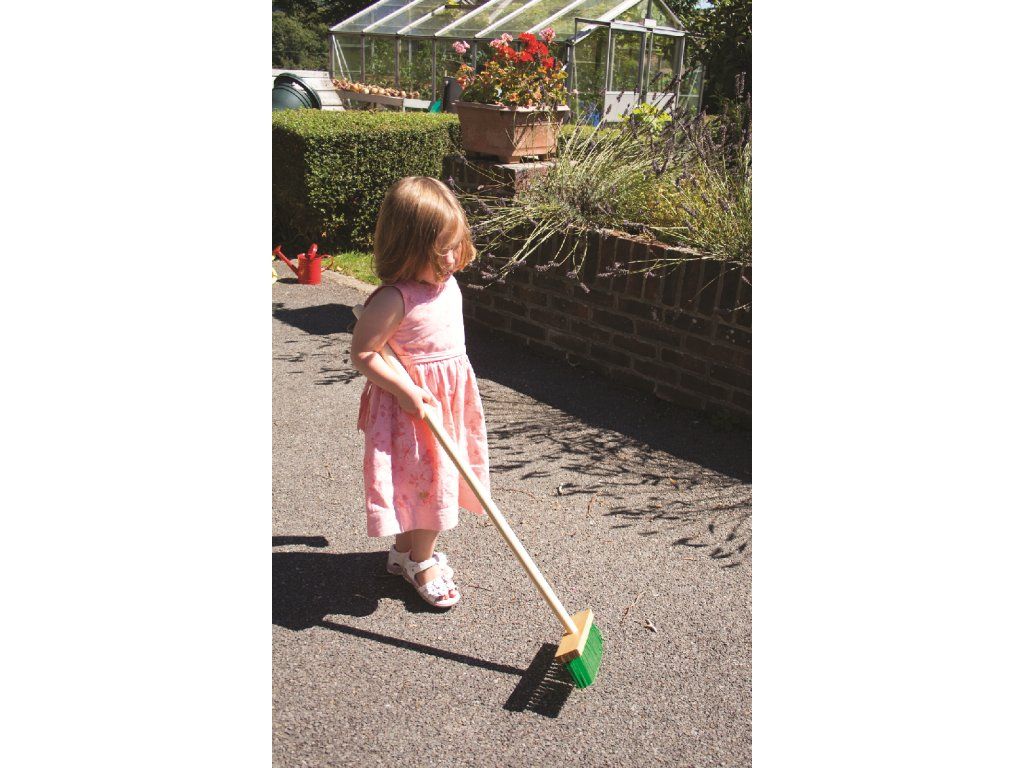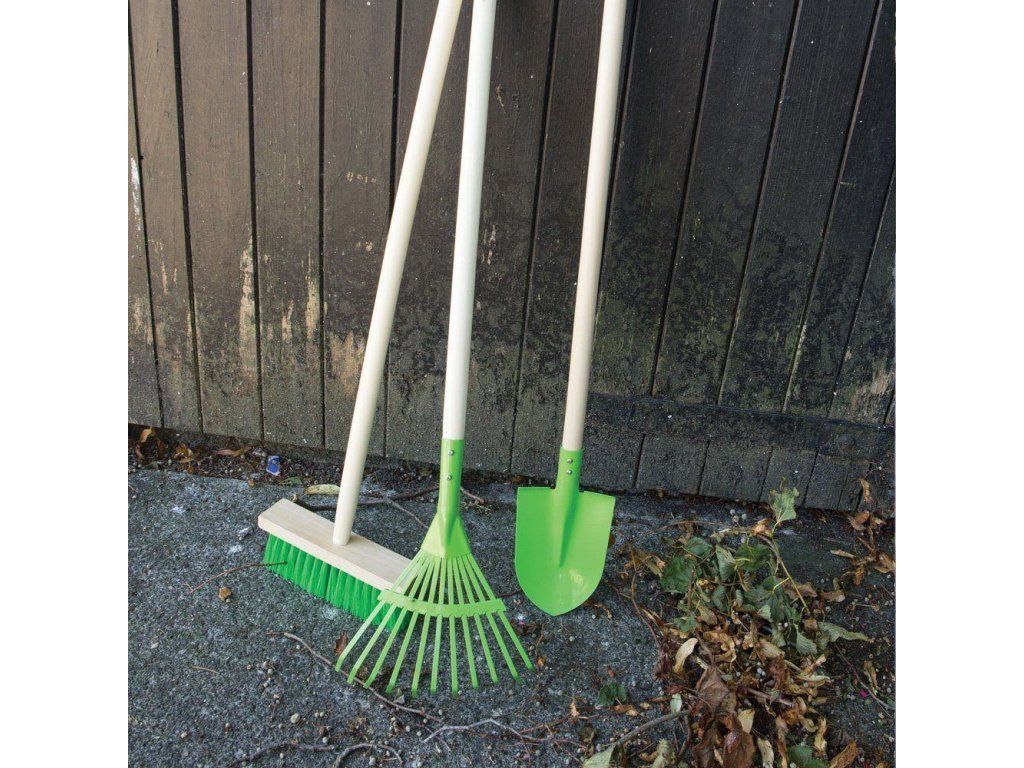 Bigjigs Toys Zahradní metlička s dlouhou násadou zelená