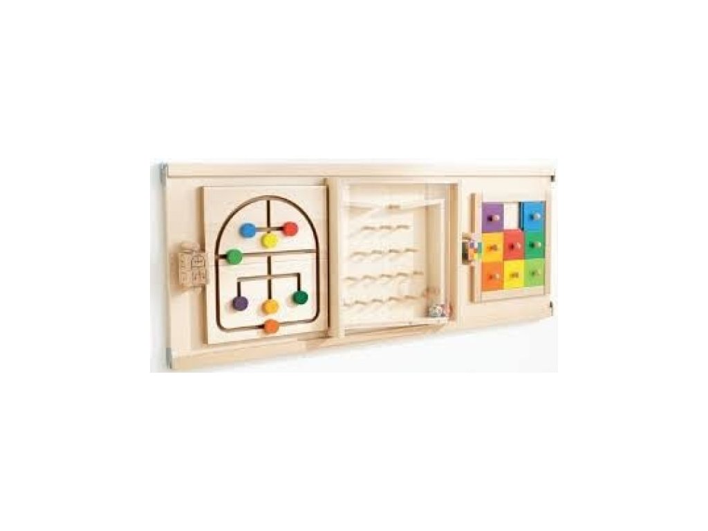 Dřevěné nástěnné elementy jsou velmi oblíbené v mateřských školkách, zábavných centrech a dětských koutcích. Podporují především jemnou motoriku a rozvíjejí různé oblasti vzdělávání malých dětí.