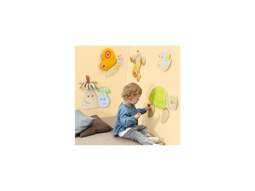 Dřevěné nástěnné elementy jsou velmi oblíbené v mateřských školkách, zábavných centrech a dětských koutcích. Podporují především jemnou motoriku a rozvíjejí různé oblasti vzdělávání malých dětí.