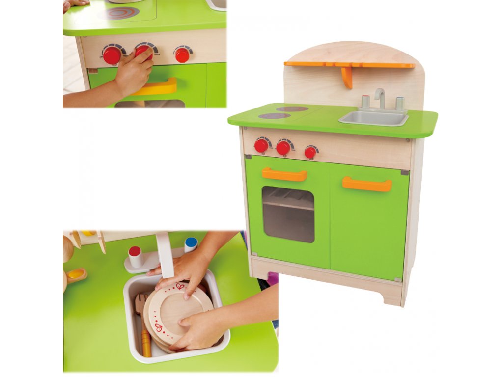 Dřevěná, kuchyňka, vysoce kvalitního zpracování, vytvoří pro Vaše děti útulné místo pro hraní sociálních rolí.