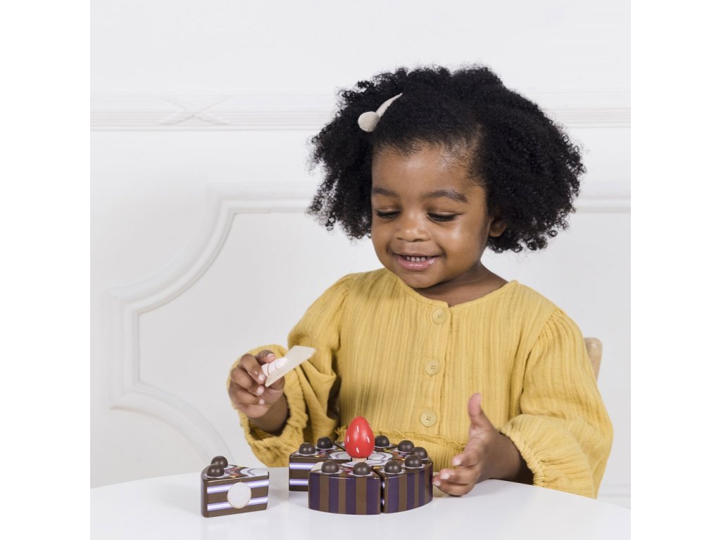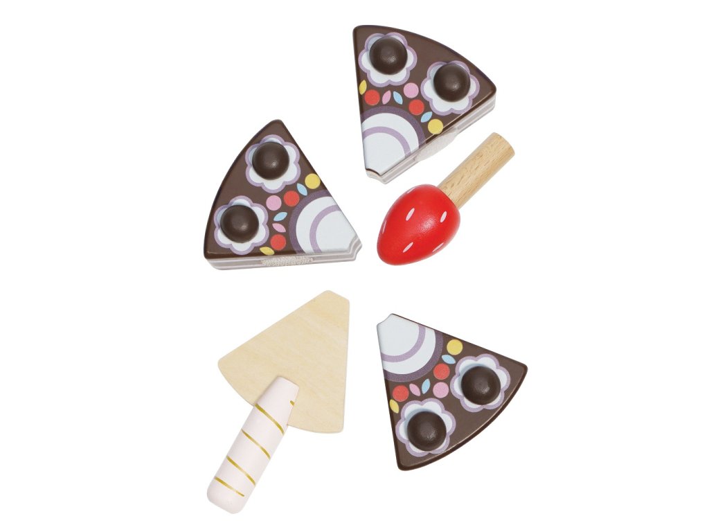 Naservírujte hostům lahodný čokoládový dort. Ručně malovaný dortík v odstínech hnědé s květinovými vzory, nechybí ani jahoda jako ozdoba. Šest dřevěných kousků je spojeno suchým zipem, lze je tak opravdu jednoduše „uříznout“. Udržitelná hračka vám vydrží opravdu dlouho, děti podpoří v rozvoji sociálních dovedností, zručnosti a jemné motoriky, je perfektní pro představivou hru na role. Hračky s účelemVšechny hračky firmy Le Toy Van jsou vyrobeny s cílem – aby dlouho vydržely. Designovány s láskou zkušenými řemeslníky za použití etických praktik a udržitelných materiálů, které jsou laskavější k naší planetě. Hlavní vlastnosti: vyrobeno eticky z udržitelného dřevatestováno dle nejpřísnějších standardůmalováno netoxickými barvami na bázi vodyinspiruje k představivé hřerozvíjí kognitivní dovednosti Honeybake kolekce: Hračky v této kolekci jsou vhodné k objevování, pomohou dětem s rozvojem představivosti, sociálních a verbálních dovedností a kognitivních funkcí. Tradiční design s moderními detaily děti jistě bude bavit. Honeybake je kolekce Le Toy Van, která vyhrála nejvíce ocenění, a to za design, kvalitu, bezpečnost a také za vzdělávací a herní hodnotu.Doplňkové parametry