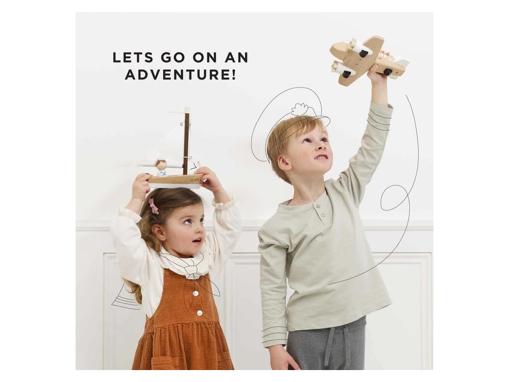 Toto dřevěné letadlo spojuje nadčasový design s moderní leteckou estetikou. Ať už je používáno jako dekorativní prvek, nebo jako hračka, okamžitě poutá pozornost každého dítěte. Je vyrobeno z FSC® certifikovaného dřeva, které si zachovává svou přirozenou kresbu a krásu. Dekorováno netoxickými barvami na bázi vody, které jsou bezpečné pro děti. Přírodní dřevo s bílými akcenty, poskytuje estetické potěšení při prozkoumávání. Letadlo je vybaveno otočnými vrtulemi, které přidávají dojem autentičnosti a podněcují fantazii. Pomáhá rozvíjet kognitivní dovednosti, zručnost a koordinaci ruka - oko. Hračky s účelemVšechny hračky firmy Le Toy Van jsou vyrobeny s cílem – aby dlouho vydržely. Designovány s láskou zkušenými řemeslníky za použití etických praktik a udržitelných materiálů, které jsou laskavější k naší planetě. Hlavní vlastnosti: rozvíjí zručnost, koordinaci a představivostvyrobeno z dřeva s certifikátem FSC®malováno netoxickými barvami na bázi vodytestováno dle nejpřísnějších standardůhračka bez plastů Značka a certifikát FSC® (Forest Stewardship Council) zaručuje, že dřevo, ze kterého byl produkt vyroben, nebylo vytěženo nelegálně a pochází z lesů obhospodařovaných šetrným či přírodě blízkým způsobem, ve kterém jsou dodržovány přísné environmentální a sociální požadavky. Značka FSC® na výrobku znamená, že svým nákupem pomáháte chránit lesy a podporujete šetrné, odpovědné či přírodě blízké hospodaření, díky kterému jsou naše lesy stabilnější, zdravější, mají přirozenou druhovou skladbu a lépe odolávají negativním následkům klimatických změn.Doplňkové parametry