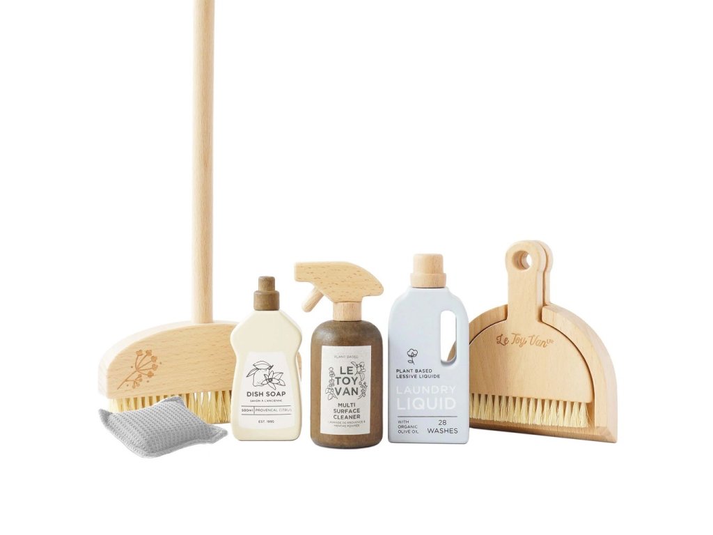 Tato ekologická dřevěná úklidová sada obsahuje stylové pomocníky k udržení pořádku v dětském pokojíčku z mořeného ořechu a přírodního dřeva. Sada obsahuje smetáček s lopatkou, smeták velký akorát tak pro děti, měkkou látkovou houbičku a čistící prostředky na úklid. Hračka pro domácnost s certifikací FSC podporuje rozvoj motoriky a poutavým způsobem buduje u dětí smysl pro pořádek. Hračky s účelemVšechny hračky firmy Le Toy Van jsou vyrobeny s cílem – aby dlouho vydržely. Designovány s láskou zkušenými řemeslníky za použití etických praktik a udržitelných materiálů, které jsou laskavější k naší planetě. Hlavní vlastnosti: 7 unikátních kusůbezpečnost testována na věk 3 let +vyrobeno eticky z udržitelného dřeva s certifikací FSCtestováno dle nejpřísnějších standardůhračka bez plastumalováno netoxickými barvami na bázi vodyinspiruje ke kreativní a představivé hře Značka a certifikát FSC® (Forest Stewardship Council) zaručuje, že dřevo, ze kterého byl produkt vyroben, nebylo vytěženo nelegálně a pochází z lesů obhospodařovaných šetrným či přírodě blízkým způsobem, ve kterém jsou dodržovány přísné environmentální a sociální požadavky. Značka FSC® na výrobku znamená, že svým nákupem pomáháte chránit lesy a podporujete šetrné, odpovědné či přírodě blízké hospodaření, díky kterému jsou naše lesy stabilnější, zdravější, mají přirozenou druhovou skladbu a lépe odolávají negativním následkům klimatických změn.Doplňkové parametry