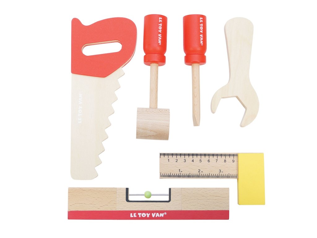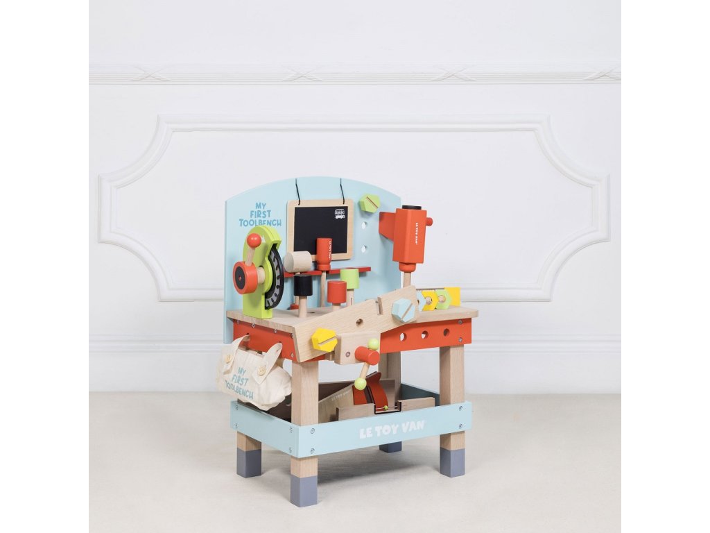 Připravte se na kutilskou zábavu s tímto dřevěným ponkem s nářadím. Obsáhlý set děti naučí mnoho o práci v dílně a manuální zručnosti. Ponk i doplňky jsou vyrobeny z pevného dřeva, vydrží vám opravdu dlouho. Mezi výbavou najdete vrtačku, cirkulárku, svěrák, pilu, kladivo, šroubovák, vodováhu, pravoúhlé pravítko, klíč a tabulku na křídu. Děti si při hraní na role užijí mnoho zábavy. Ponk má vespod polici, která slouží jako úložný prostor. Do dvou perforovaných dřevěných destiček mohou našroubovat šrouby i s matkami. Hračky s účelemVšechny hračky firmy Le Toy Van jsou vyrobeny s cílem – aby dlouho vydržely. Designovány s láskou zkušenými řemeslníky za použití etických praktik a udržitelných materiálů, které jsou laskavější k naší planetě. Hlavní vlastnosti: vyrobeno eticky z udržitelného FSC dřevatestováno dle nejpřísnějších standardůmalováno netoxickými barvami na bázi vodyinspiruje k představivé hřerozvíjí kognitivní dovednosti Ocenění hračky:Good Toy Guide Approved Auta & stavby: Stavební a motorická kolekce Le Toy Van, která vyhrála mnoho ocenění. Přesněji prozatím přes 15 ocenění za představivá auta a stavební hračky. Podporují dětskou fantazii, jsou ideální k představivé hře, rozvíjí kreativitu a hravě zlepšují dětskou koordinaci ruka‑oko. Značka a certifikát FSC® (Forest Stewardship Council) zaručuje, že dřevo, ze kterého byl produkt vyroben, nebylo vytěženo nelegálně a pochází z lesů obhospodařovaných šetrným či přírodě blízkým způsobem, ve kterém jsou dodržovány přísné environmentální a sociální požadavky. Značka FSC® na výrobku znamená, že svým nákupem pomáháte chránit lesy a podporujete šetrné, odpovědné či přírodě blízké hospodaření, díky kterému jsou naše lesy stabilnější, zdravější, mají přirozenou druhovou skladbu a lépe odolávají negativním následkům klimatických změn.Doplňkové parametry