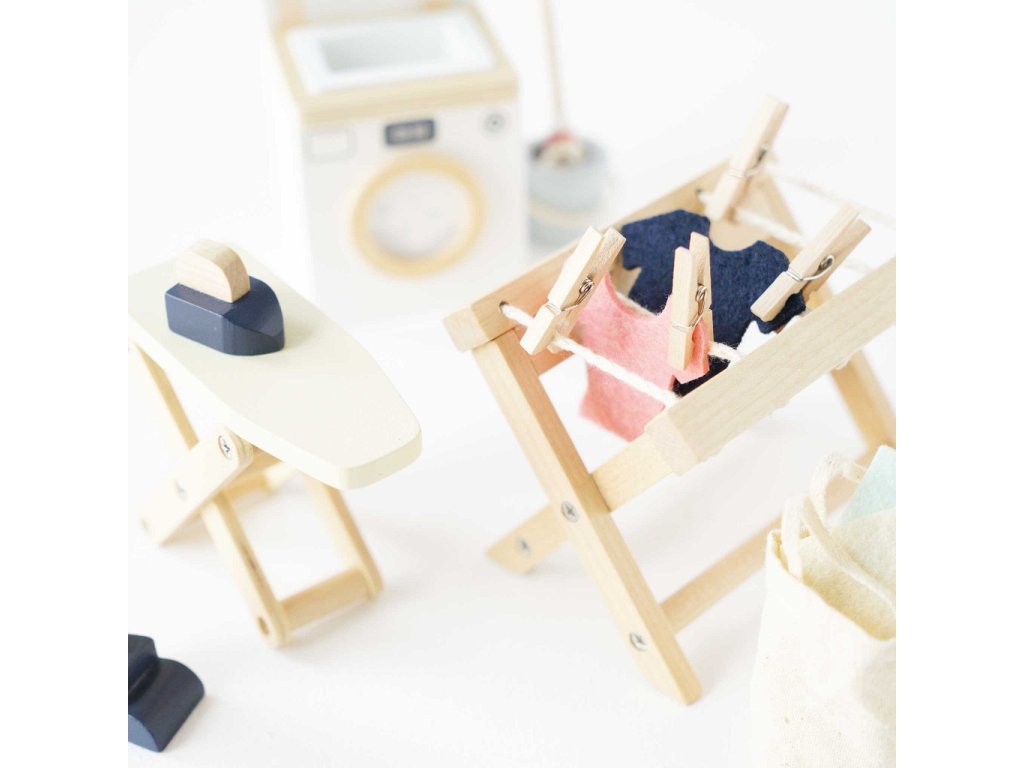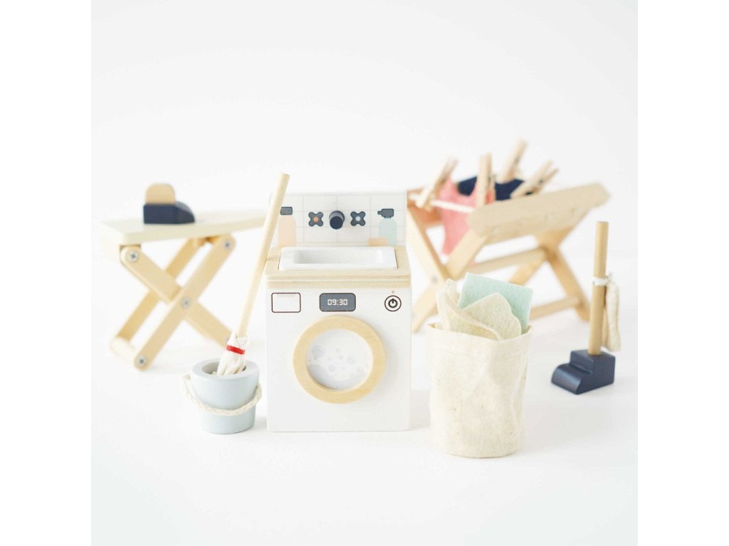 Praní prádla bude s tímto setem do prádelny mnohem zábavnější. Toto krásné vybavení o 16 ks je vyrobeno ze vysoce kvalitního dřeva s certifikací FSC® a bude se perfektně hodit do domečků pro panenky. Najdete zde pračku, sušák na prádlo, žehličku a prkno na žehlení, 4 kolíčky, plstěné oblečení, smeták a kyblík, vysavač a další. Velikostně se hodí do domečků pro panenky od Le Toy Van, více doplňků domečků z řady Daisylane najdete na našem webu. Hračky s účelemVšechny hračky firmy Le Toy Van jsou vyrobeny s cílem – aby dlouho vydržely. Designovány s láskou zkušenými řemeslníky za použití etických praktik a udržitelných materiálů, které jsou laskavější k naší planetě. Hlavní vlastnosti: vyrobeno eticky z udržitelných materiálůtestováno dle nejpřísnějších standardůmalováno netoxickými barvami na bázi vodytrénuje jemnou motoriku a koordinaciinspiruje ke kreativní a představivé hře Daisylane kolekce: Prestižní kolekce domečků pro panenky a doplňků firmy Le Toy Van. Před více než 25 lety zakladatel Georges navrhl svůj úplně první domeček pro panenky, stavební kámen této firmy. Vyrobeno eticky z udržitelných materiálů, dřevěné domečky pro panenky Daisylane jsou jedinečné a nebudou dětskou představivost držet zpátky. Rodinné dědictví, opravdová investice do hraní.Doplňkové parametry