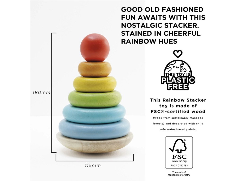 Dokážeš poskládat tuto duhu ve správném pořadí? Robustní barevné kroužky vybízí i ty nejmenší děti k jejich třídění. Trénuje se tak motorika, koordinace ruky a oka a chápání tvarů a velikostí. Houpající základna přidává na zábavě! Skládací věž je vyrobena ze dřeva s certifikací FSC® (dřevo z lesů obhospodařovaných udržitelným způsobem) a ozdobena barvami na vodní bázi bezpečnými pro děti. Hračky s účelemVšechny hračky firmy Le Toy Van jsou vyrobeny s cílem – aby dlouho vydržely. Designovány s láskou zkušenými řemeslníky za použití etických praktik a udržitelných materiálů, které jsou laskavější k naší planetě. Hlavní vlastnosti: vyrobeno eticky z udržitelného dřevatestováno dle nejpřísnějších standardůmalováno netoxickými barvami na bázi vody6 kroužků a kolíček se zaoblenou základnoutrénuje motoriku a koordinaci Ocenění hračky: Right Start Toy Award 2023 Petilou kolekce: Kolekce pro nemluvňata a batolata od Le Toy Van obsahuje hlavně hmatové hračky, které mají nejmenším posloužit také jako učební prostředky. Kolekce je inspirována přírodou kolem nás a je navržena tak, aby rozvíjela smysly dětí pomocí rozdílných zvuků, textur, tvarů a hmotností. Děti tak od malička zapojí všechny své smysly. V kolekci najdete například skládačky, vkládačky, chodítka, … Značka a certifikát FSC® (Forest Stewardship Council) zaručuje, že dřevo, ze kterého byl produkt vyroben, nebylo vytěženo nelegálně a pochází z lesů obhospodařovaných šetrným či přírodě blízkým způsobem, ve kterém jsou dodržovány přísné environmentální a sociální požadavky. Značka FSC® na výrobku znamená, že svým nákupem pomáháte chránit lesy a podporujete šetrné, odpovědné či přírodě blízké hospodaření, díky kterému jsou naše lesy stabilnější, zdravější, mají přirozenou druhovou skladbu a lépe odolávají negativním následkům klimatických změn.Doplňkové parametry