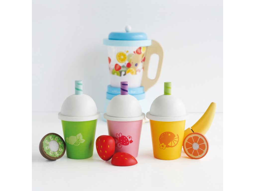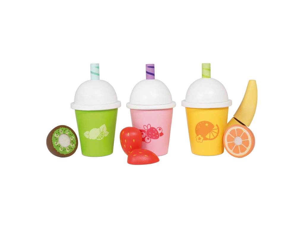 Chutné trio smoothies to-go, neboli s sebou. Tyto roztomilé ovocné koktejly jsou univerzální, budou se hodit do dětských kuchyněk i prodejních stánků, samozřejmě poslouží i samostatně. Paleta pestrých barev je na slámce doplněna o proužky, tato genderově neutrální hračka je vyrobena z pevného a udržitelného dřeva. Hodí se také k ostatním hračkám v tematice dětského tržního stánku a kuchyně, to vše pro bohatou hru plnou představivosti. Hračky s účelemVšechny hračky firmy Le Toy Van jsou vyrobeny s cílem – aby dlouho vydržely. Designovány s láskou zkušenými řemeslníky za použití etických praktik a udržitelných materiálů, které jsou laskavější k naší planetě. Hlavní vlastnosti: vyrobeno eticky z udržitelného FSC dřevatestováno dle nejpřísnějších standardůmalováno netoxickými barvami na bázi vodyinspiruje ke kreativní a představivé hřehračka pro hraní na role pomáhá s brzkým rozvojem dětí Honeybake kolekce: Hračky v této kolekci jsou vhodné k objevování, pomohou dětem s rozvojem představivosti, sociálních a verbálních dovedností a kognitivních funkcí. Tradiční design s moderními detaily děti jistě bude bavit. Honeybake je kolekce Le Toy Van, která vyhrála nejvíce ocenění, a to za design, kvalitu, bezpečnost a také za vzdělávací a herní hodnotu. Značka a certifikát FSC® (Forest Stewardship Council) zaručuje, že dřevo, ze kterého byl produkt vyroben, nebylo vytěženo nelegálně a pochází z lesů obhospodařovaných šetrným či přírodě blízkým způsobem, ve kterém jsou dodržovány přísné environmentální a sociální požadavky. Značka FSC® na výrobku znamená, že svým nákupem pomáháte chránit lesy a podporujete šetrné, odpovědné či přírodě blízké hospodaření, díky kterému jsou naše lesy stabilnější, zdravější, mají přirozenou druhovou skladbu a lépe odolávají negativním následkům klimatických změn.Doplňkové parametry