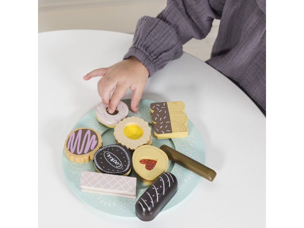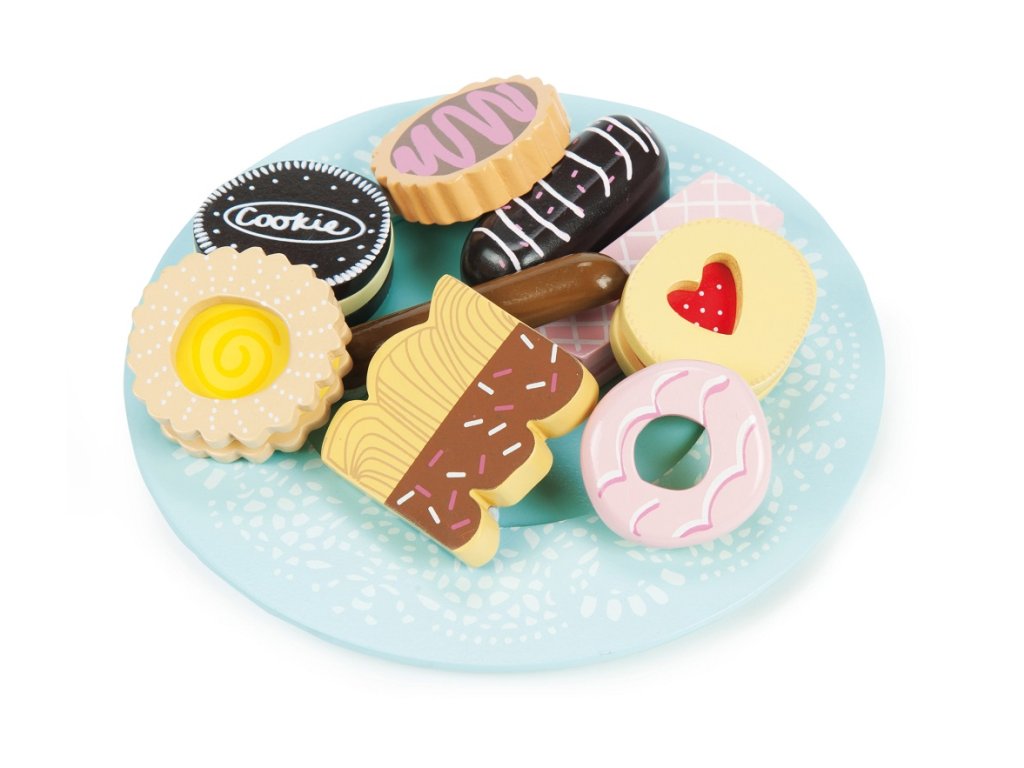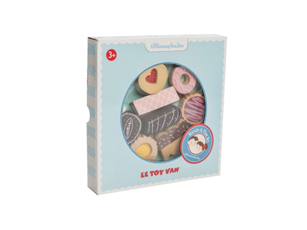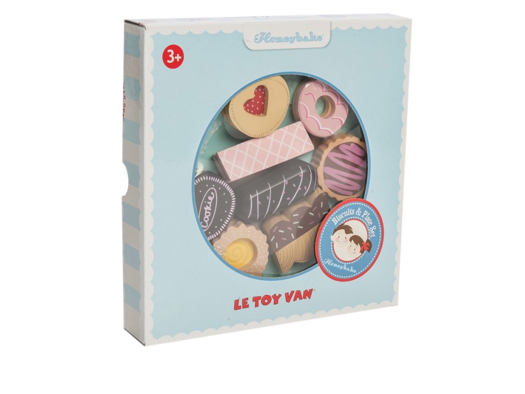 Kdo si dá sušenku? Na výběr je 9 domácích sušenek, které jsou samozřejmě ze dřeva. Mají rozdílné tvary i ilustrace. Sušenky jsou servírovány na dekorovaném talíři. Perfektní hračka pro čajové dýchánky i jinou představivou hru. Malováno netoxickými barvami na bázi vody. Hračky s účelemVšechny hračky firmy Le Toy Van jsou vyrobeny s cílem – aby dlouho vydržely. Designovány s láskou zkušenými řemeslníky za použití etických praktik a udržitelných materiálů, které jsou laskavější k naší planetě. Hlavní vlastnosti: vyrobeno eticky z udržitelného dřevatestováno dle nejpřísnějších standardůmalováno netoxickými barvami na bázi vodyinspiruje k představivé hřerozvíjí kognitivní dovednosti Honeybake kolekce: Hračky v této kolekci jsou vhodné k objevování, pomohou dětem s rozvojem představivosti, sociálních a verbálních dovedností a kognitivních funkcí. Tradiční design s moderními detaily děti jistě bude bavit. Honeybake je kolekce Le Toy Van, která vyhrála nejvíce ocenění, a to za design, kvalitu, bezpečnost a také za vzdělávací a herní hodnotu.Doplňkové parametry