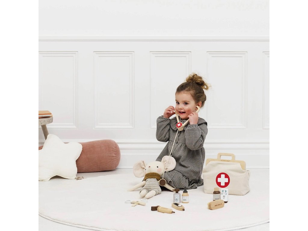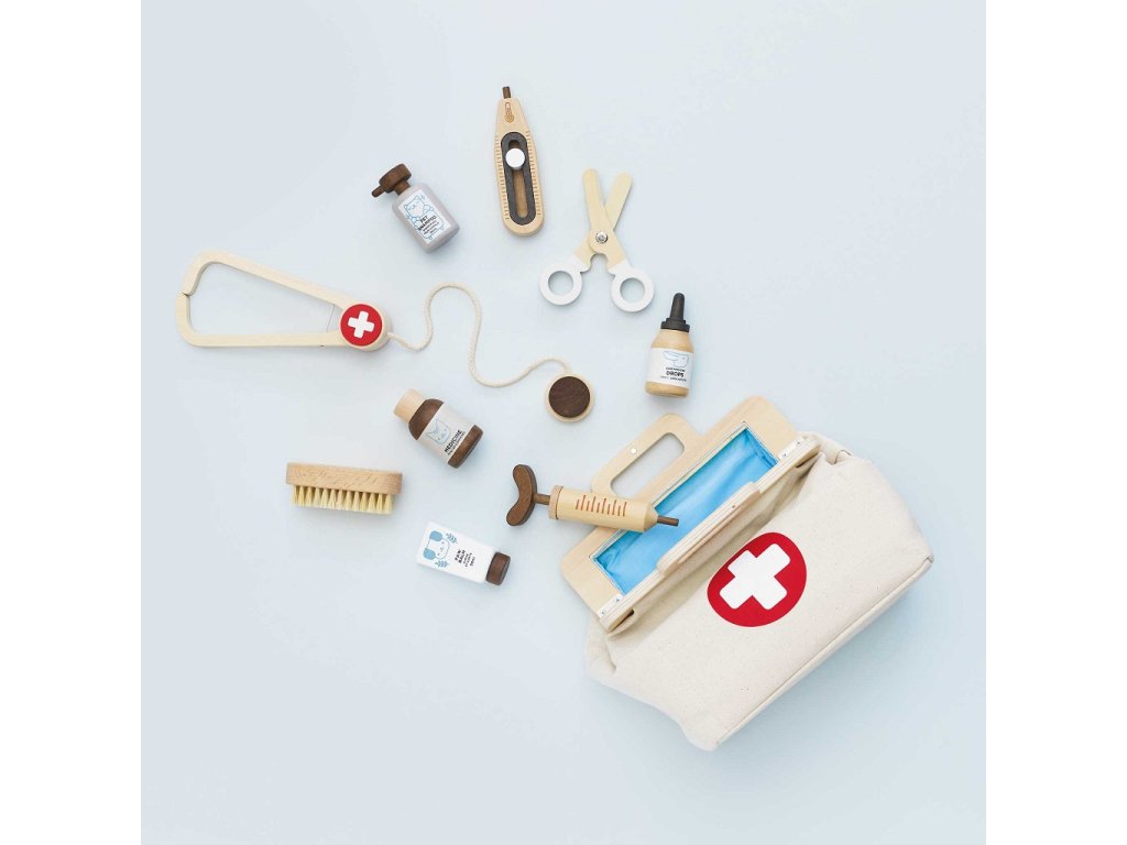 Představujeme Vám sadu pro malé veterináře. Obsahuje veterinární tašku ve stylu vintage, která je vybavena všemi potřebnými nástroji, aby se každému zvířecímu pacientovi dostalo té nejlepší péče. V brašně najdete zklidňující balzám na tlapky, ušní kapky, krabičku na léky, šampon pro domácí mazlíčky, stetoskop, nůžky, injekční stříkačku a měkký kartáček s ekologickými štětinami. Všechny doplňky jsou z mořeného přírodního dřeva s certifikací FSC. Hračky s účelemVšechny hračky firmy Le Toy Van jsou vyrobeny s cílem – aby dlouho vydržely. Designovány s láskou zkušenými řemeslníky za použití etických praktik a udržitelných materiálů, které jsou laskavější k naší planetě. Hlavní vlastnosti: 10 unikátních kusůbezpečnost testována na věk 3 let +vyrobeno eticky z udržitelného dřeva s certifikací FSCtestováno dle nejpřísnějších standardůhračka bez plastuinspiruje ke kreativitě a představivosti Značka a certifikát FSC® (Forest Stewardship Council) zaručuje, že dřevo, ze kterého byl produkt vyroben, nebylo vytěženo nelegálně a pochází z lesů obhospodařovaných šetrným či přírodě blízkým způsobem, ve kterém jsou dodržovány přísné environmentální a sociální požadavky. Značka FSC® na výrobku znamená, že svým nákupem pomáháte chránit lesy a podporujete šetrné, odpovědné či přírodě blízké hospodaření, díky kterému jsou naše lesy stabilnější, zdravější, mají přirozenou druhovou skladbu a lépe odolávají negativním následkům klimatických změn.Doplňkové parametry