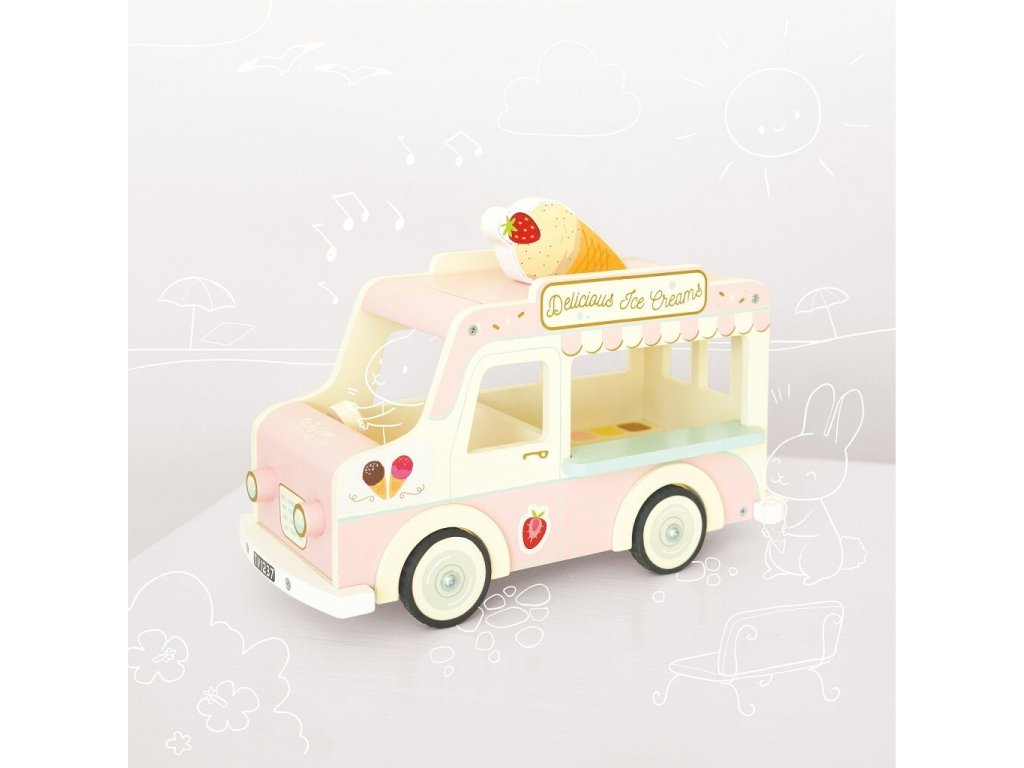 Poškozený obal, nové zboží bez závad. Dva kopečky, prosím! Tento miniaturní zmrzlinový vůz ve velikosti panenek vypadá opravdu sladce. Vintage hračka jistě vnese nostalgii i do vašeho domova. Má mnoho interaktivních prvků, v balení najdete nálepky, kterými si můžete vůz vyšperkovat. Odklopitelná střecha a okno se servírovacím pultem jsou jako stvořené pro hru na role!Vyrobeno z odolného a udržitelného kaučukového dřeva, hodí se nejen k domečkům pro panenky od Le Toy Van. Vhodné pro postavičky ve velikosti okolo 10 cm. Hlavní vlastnosti: vyrobeno eticky z udržitelného dřevatestováno dle nejpřísnějších standardůmalováno netoxickými barvami na bázi vodyinspiruje k představivé hřeasistuje při brzkém rozvoji Hračka získala prestižní ocenění hračky roku Right Start Best Toy Awards Winner. Daisylane kolekce: Prestižní kolekce domečků pro panenky a doplňků firmy Le Toy Van. Před více než 25 lety zakladatel Georges navrhl svůj úplně první domeček pro panenky, stavební kámen této firmy. Vyrobeno eticky z udržitelných materiálů, dřevěné domečky pro panenky Daisylane jsou jedinečné a nebudou dětskou představivost držet zpátky. Rodinné dědictví, opravdová investice do hraní.Doplňkové parametry