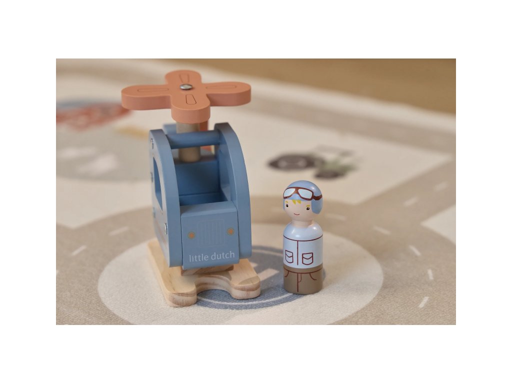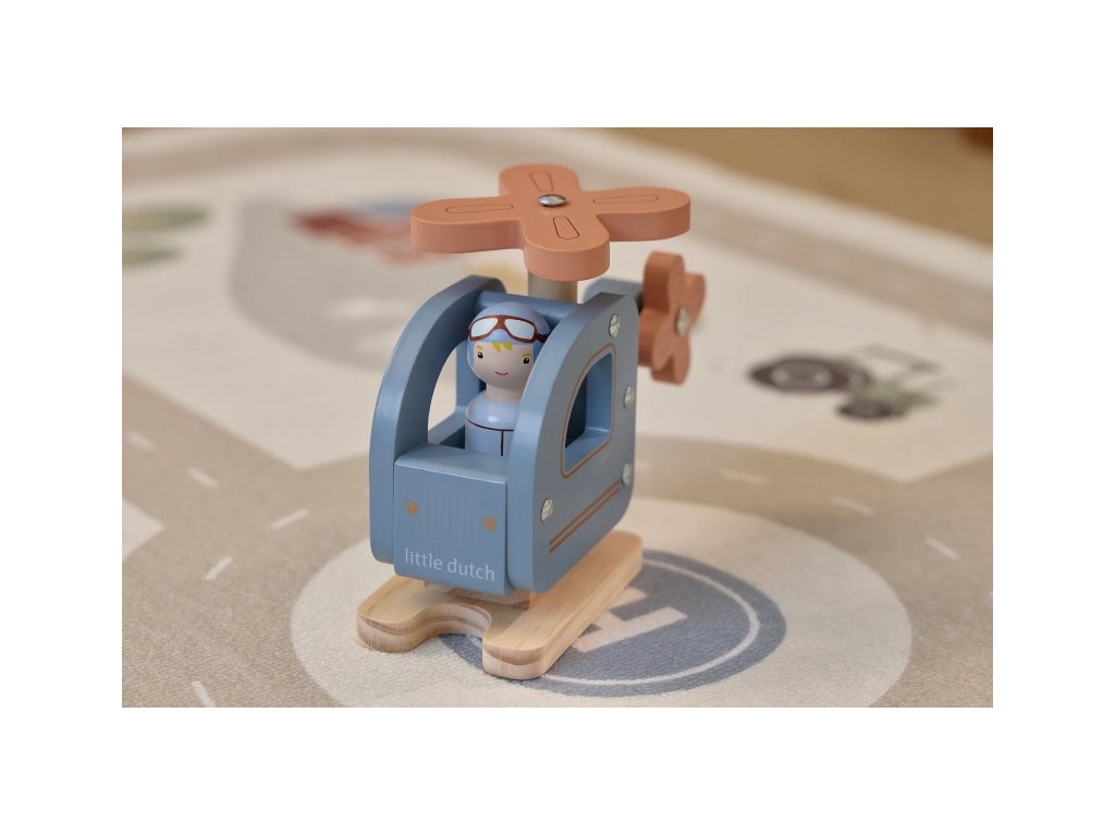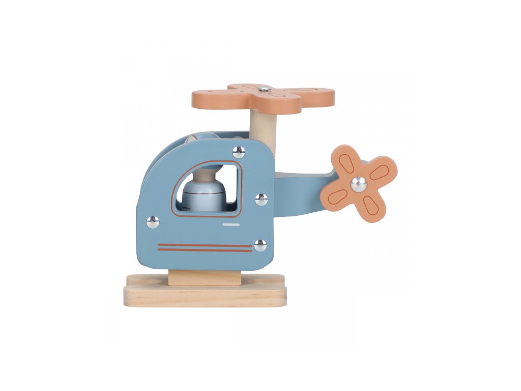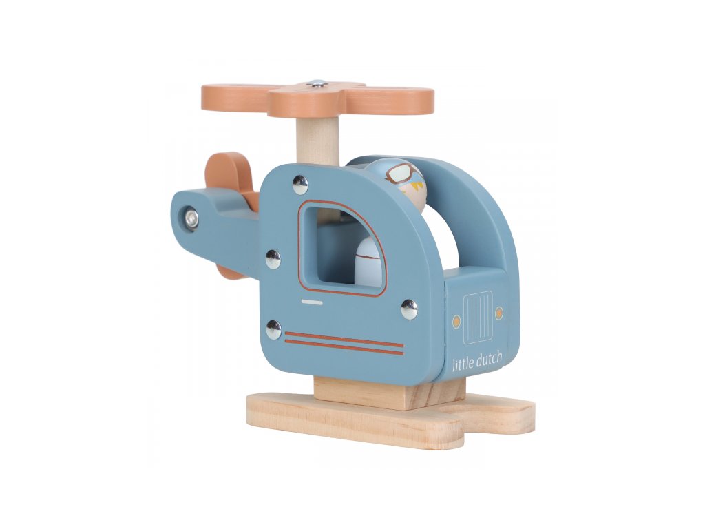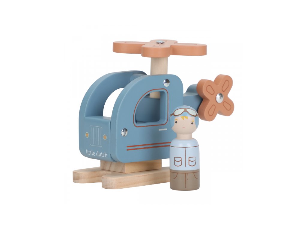 Krásná dřevěná helikoptéra připravená pro malé piloty.