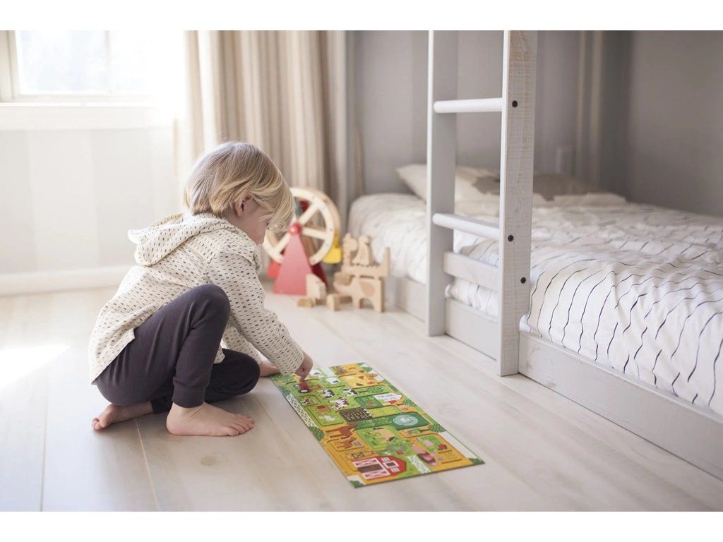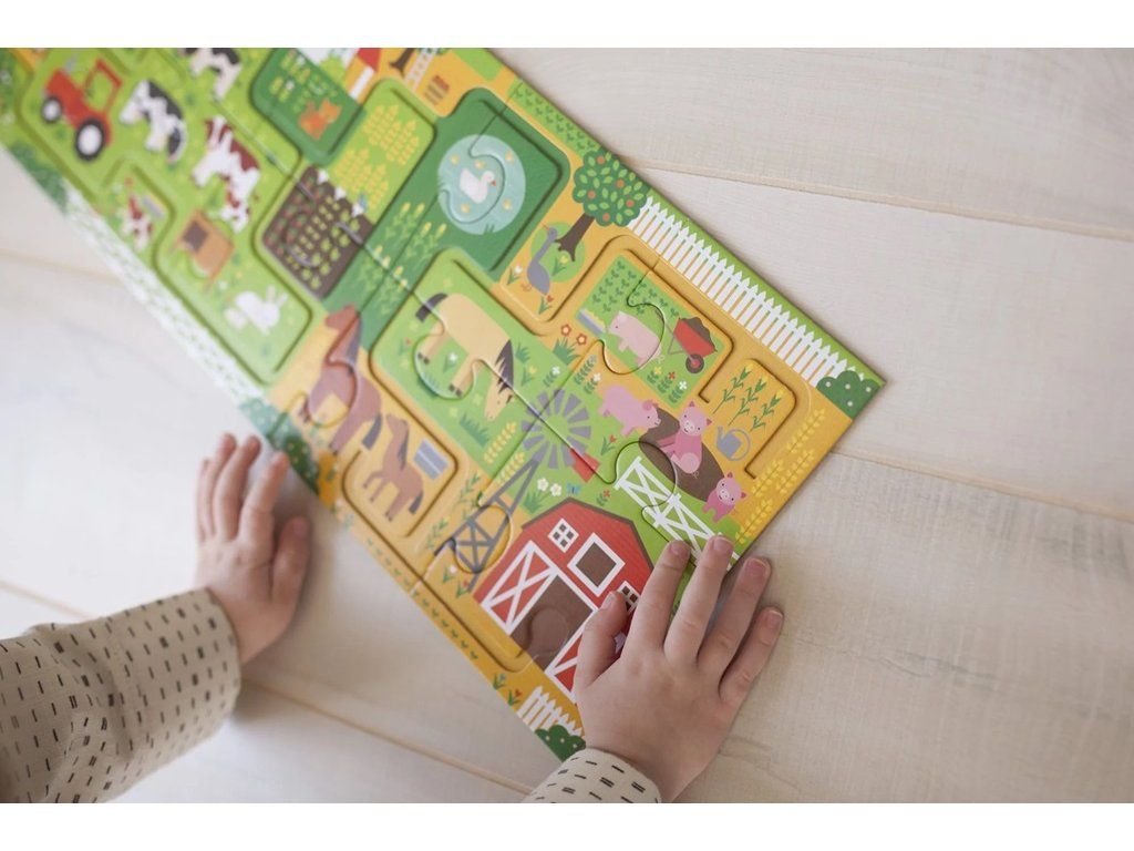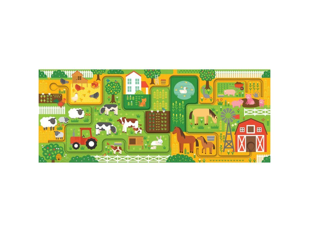 Následujte cestičky, dorazíte díky nim do několika různých destinací! Najdete na farmě všech 20 z těchto destinací? Zábava začíná po složení tohoto 10 dílného puzzle. Děti následují bludiště prstem, během této cesty musí najít 20 různých předmětů. Hlavní vlastnosti: 10 velkých dílků puzzleJeďte po bludišti prstem a najděte 20 předmětůNatištěno na recyklovaném papíře barvami na bázi zeleninySplňuje a překonává všechny bezpečnostní standardyDoplňkové parametry