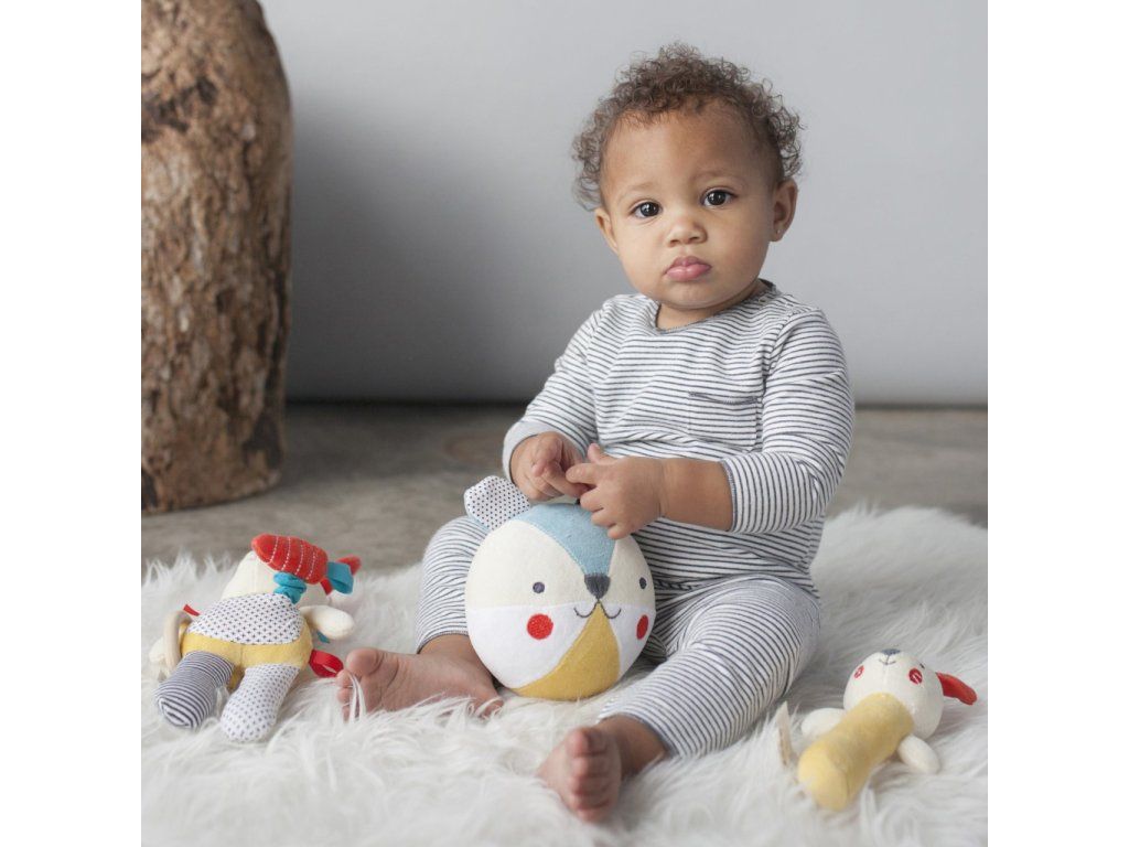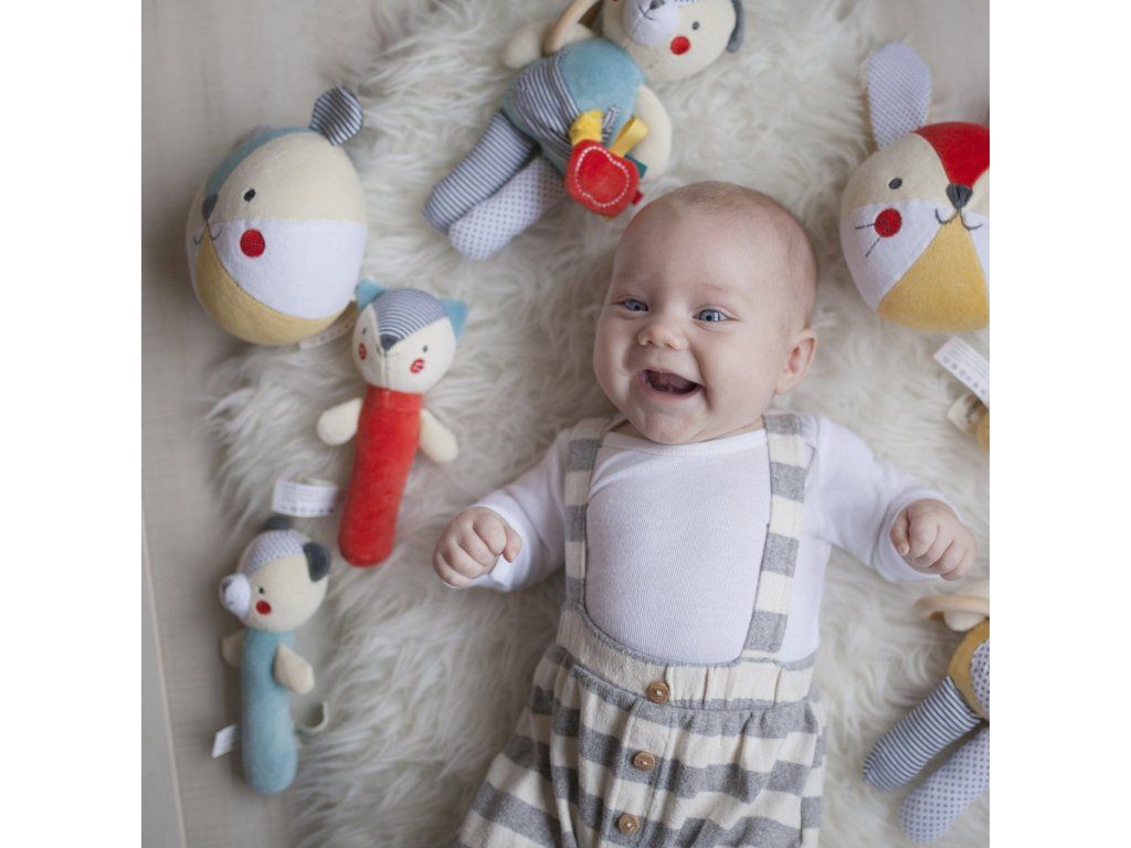 Textilní chrastítko pro děti od narození. Hlavní vlastnosti: Použity barvy na rostlinné bázi šetrné k životnímu prostředíVyrobeno z organické bavlny nejvyšší kvality, certifikováno GOTSDoplňkové parametry