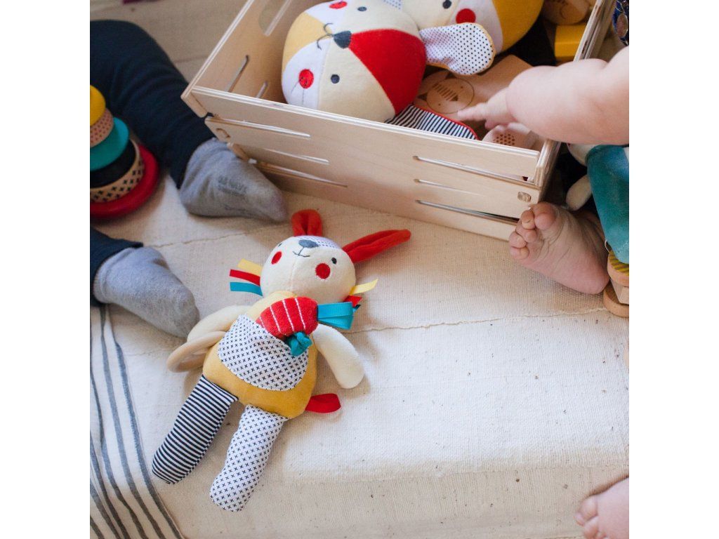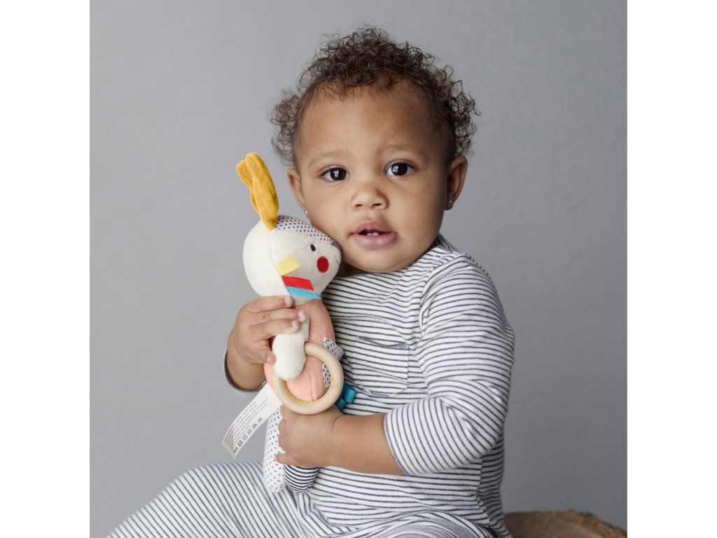 Petit Collage Chrastítko růžový zajíček aktivní