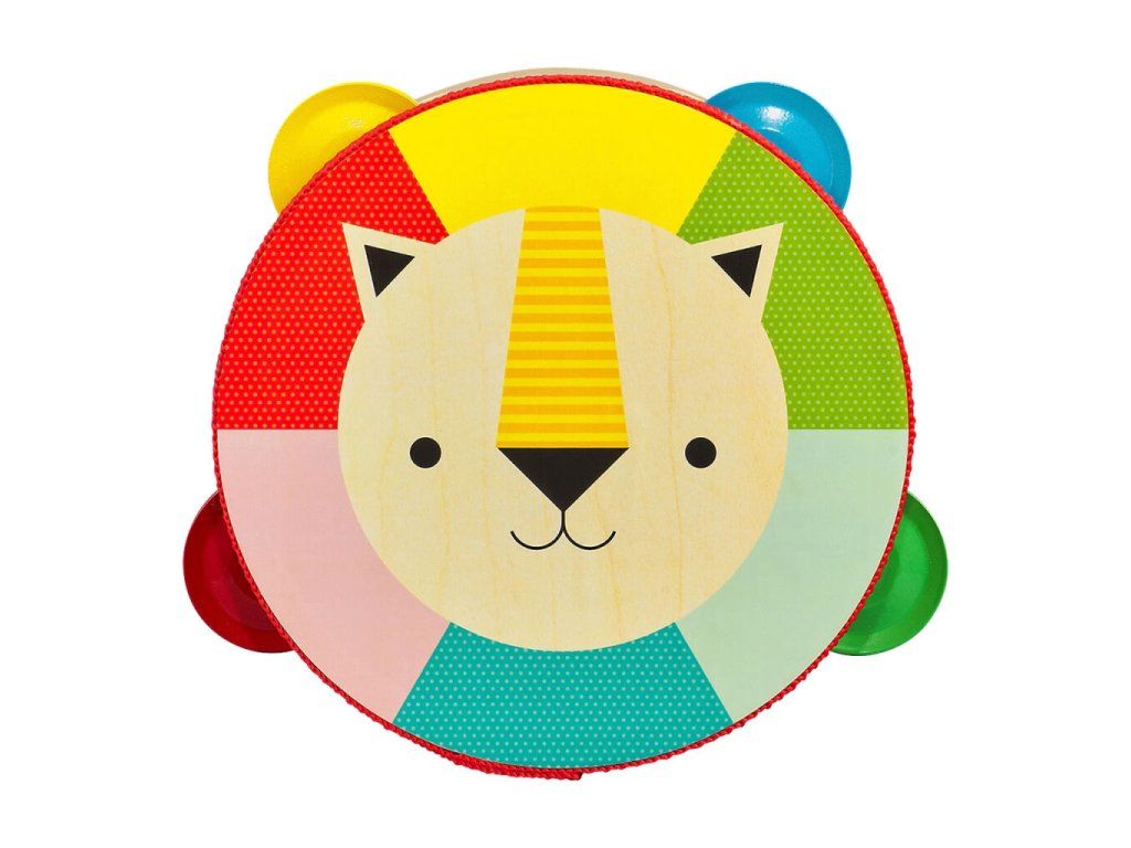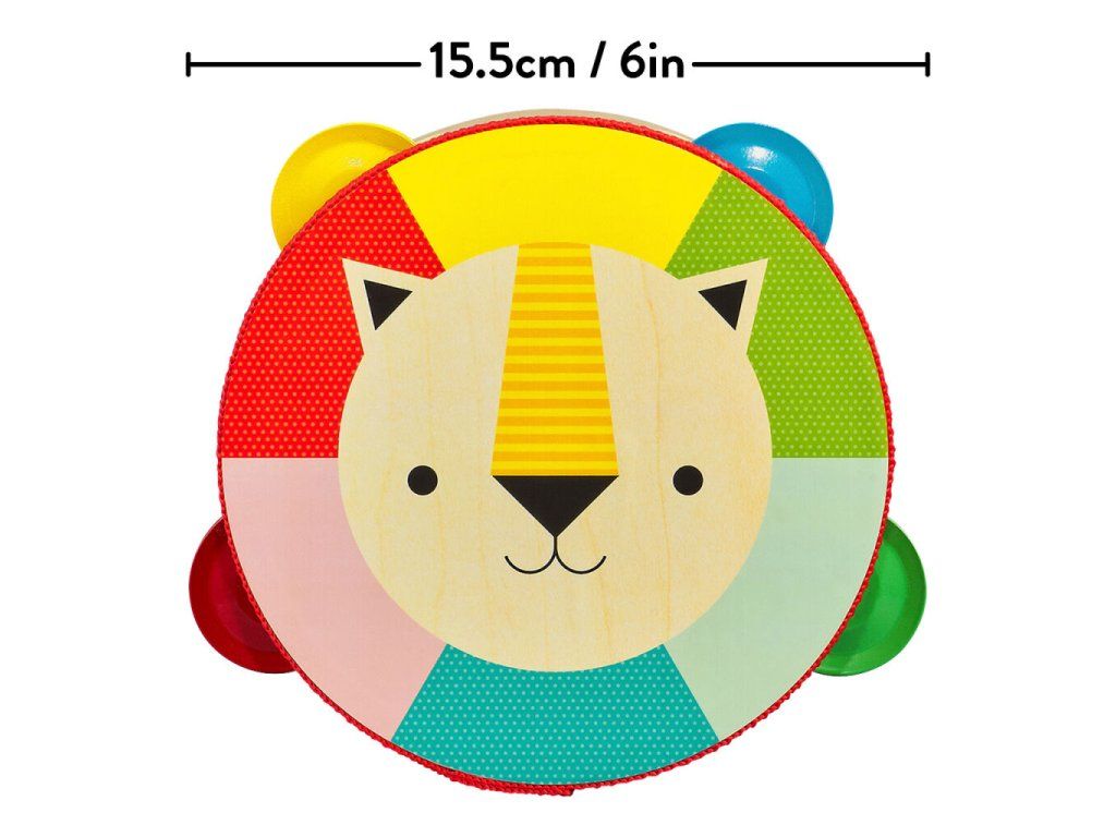 Zahrajte na tamburínu a zatančete si! Dřevěná tamburína s ilustrací duhového lva děti inspiruje k tvorbě hudby. Tamburína má 4 cimbálky, je vyrobena z topolové překližky a je nabarvena netoxickými rostlinnými barvami. Hlavní vlastnosti: Ideální pro začínající hudebníky4 cimbálkypestrobarevný designpotištěno netoxickými barvami a lakem na vodní báziDoplňkové parametry