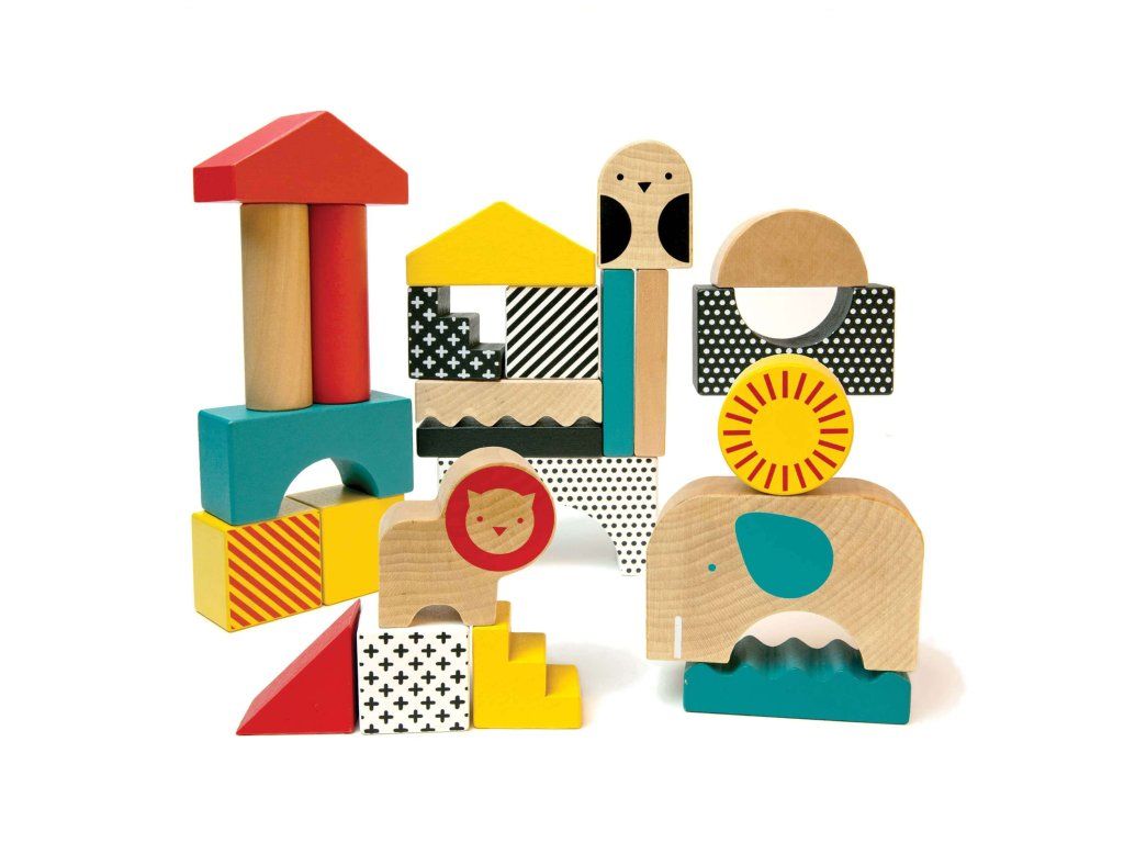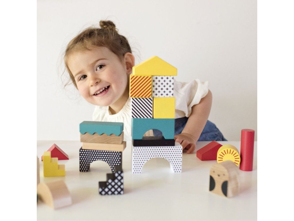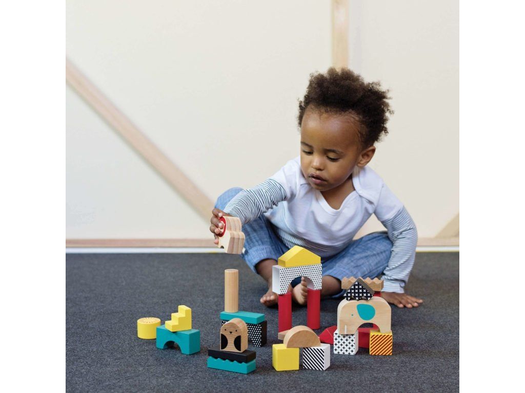 Skládejte, stavte, zbořte, opakujte. Robustní kostky mají jemně zaoblené okraje a jsou jednoduše uchopitelné. Perfektní pro batolata. S 26 dílky v různých tvarech a barvách mohou děti postavit cokoliv, kreativitě se meze nekladou. Obsahuje 14 tvarů a několik vzorů, od teček po proužky a 3 zvířata. Hlavní vlastnosti: Rozvíjí poznávání tvarů, barev a vzorůRozvoj koordinace ruka-okoRozvoj poznávání barev a tvarů i počítání26 kostek v 5 zářivých barváchVyrobeno z kvalitního dřeva z odpovědných zdrojů a netoxických barev na bázi vodySplňuje všechny bezpečnostní normyDoplňkové parametry