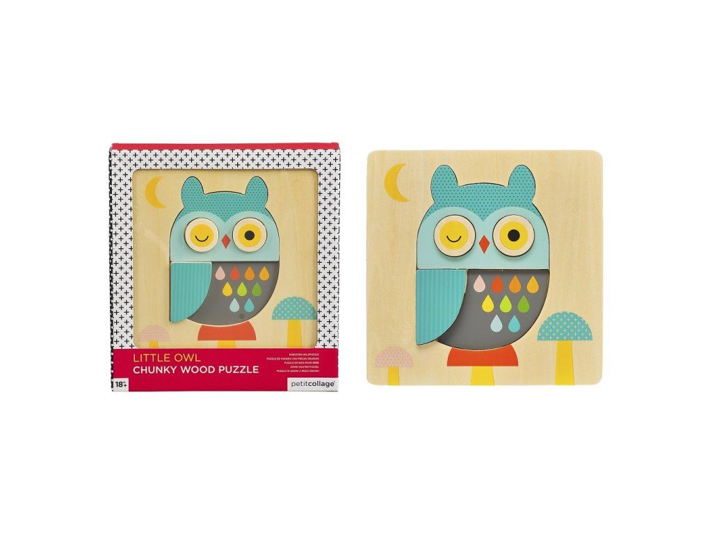 Petit Collage Dřevěné puzzle sova