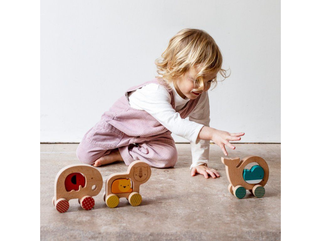 Vaše dítko si tohoto lva zamiluje! Dřevěný lev má hladká kolečka, je pro děti jednoduše uchopitelný, což je povzbudí ve hře. Hlavní vlastnosti Uvnitř lva je dílek lvíčeteVyrobeno z FSC dřevaMalováno barvami na bázi vodyPodporuje koordinaci ruka-oko, hrubou motoriku, jemnou motoriku a rovnováhuRecyklovatelný obalVhodné od 12 měsíců Značka a certifikát FSC® (Forest Stewardship Council) zaručuje, že dřevo, ze kterého byl produkt vyroben, nebylo vytěženo nelegálně a pochází z lesů obhospodařovaných šetrným či přírodě blízkým způsobem, ve kterém jsou dodržovány přísné environmentální a sociální požadavky. Značka FSC® na výrobku znamená, že svým nákupem pomáháte chránit lesy a podporujete šetrné, odpovědné či přírodě blízké hospodaření, díky kterému jsou naše lesy stabilnější, zdravější, mají přirozenou druhovou skladbu a lépe odolávají negativním následkům klimatických změn.Doplňkové parametry