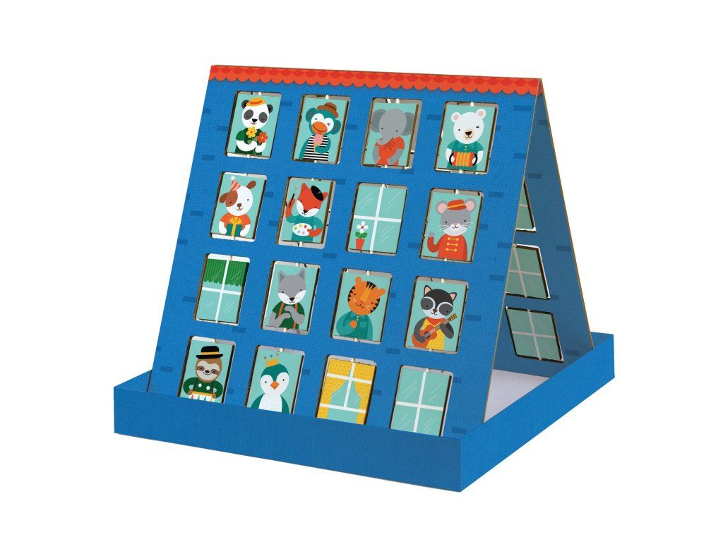 Ťuk, ťuk! Kdo tam? Uhádněte kdo je za dveřmi dřív, než to uhádne Váš soupeř! Klasická zábavná desková hra o dedukci. Hra se speciální herní plochou, která se dá postavit do písmene A. Je oboustranná, má otočná okýnka a neobsahuje plast. Hlavní vlastnosti: Hra pro dva hráče, průměrná doba hry 10 minutVyrobeno z recyklovaných materiálů Natištěno inkoustem ze zeleninyOd 4 do 8 let věkuSplňuje a překračuje všechny bezpečnostní normyDoplňkové parametry