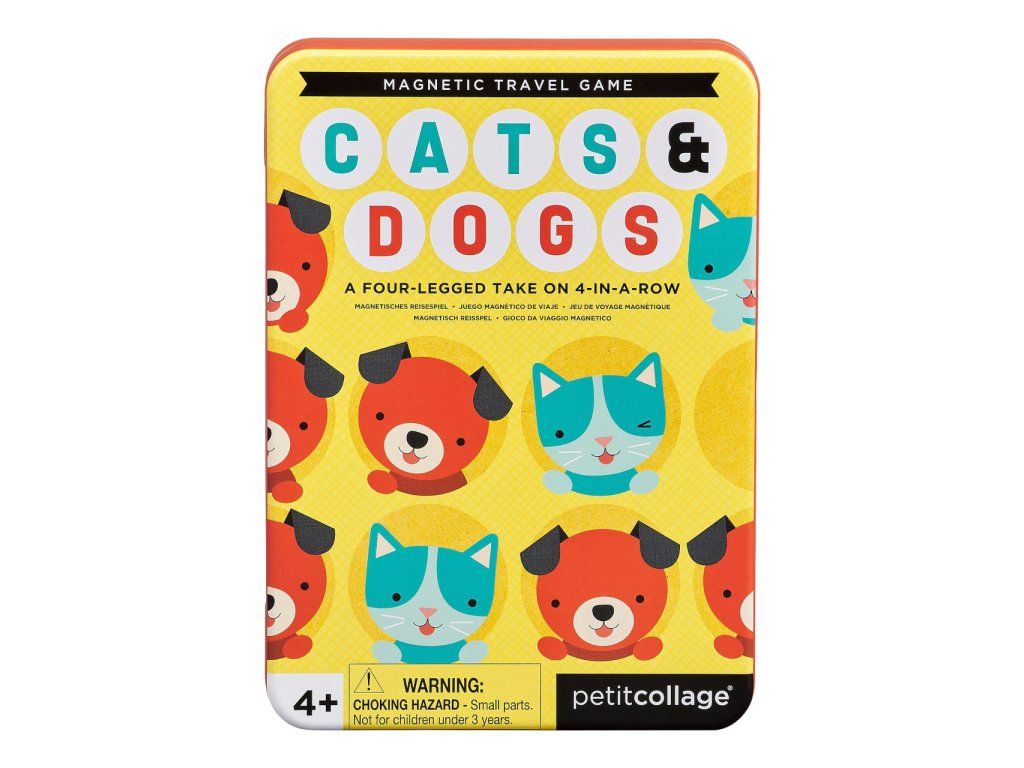 Kočky versus psi! Magnetická hra perfektní na cesty. Zkuste postavit do řady 4 kočky či psy za sebou, jsou to v podstatě zvířecí piškvorky... Hlavní vlastnosti: Skvělá cestovní hračka v kovové krabičce Natištěno netoxickými barvami, které berou v potaz zdraví dětí a planetuDoplňkové parametry